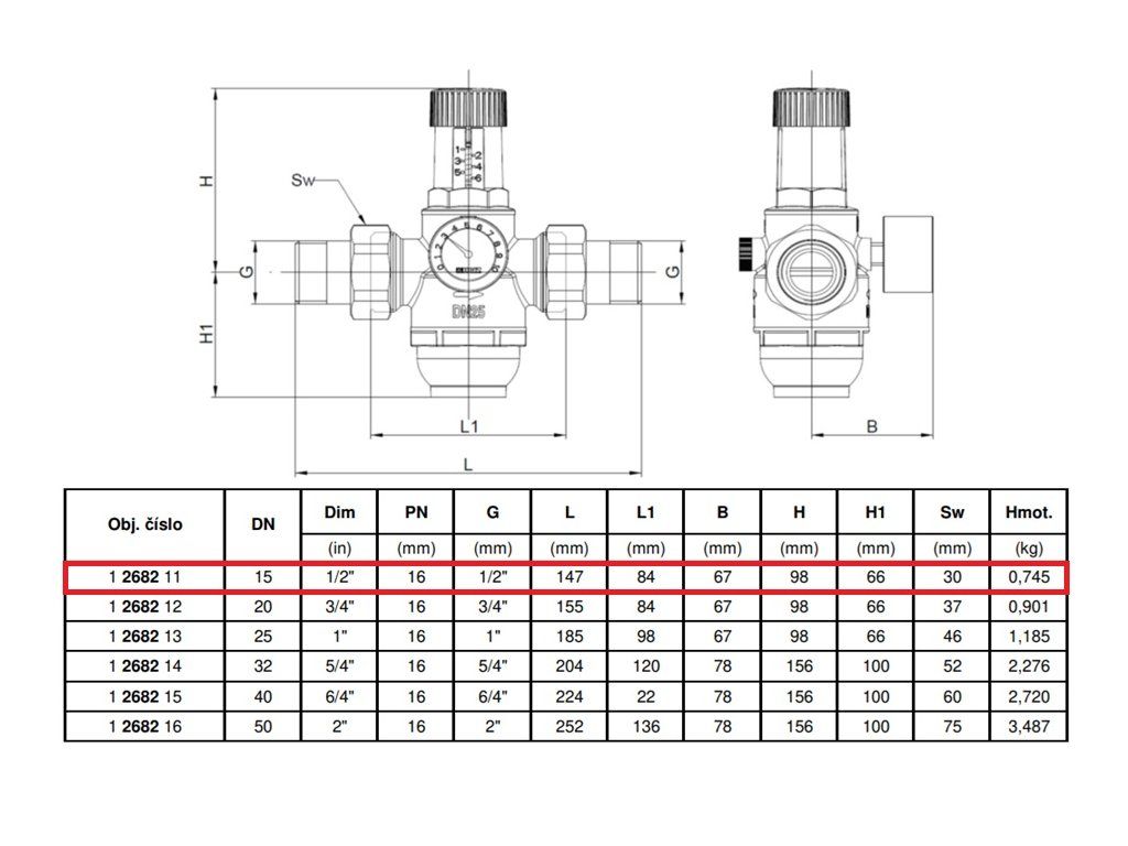 HERZ Ventil tlakový membránový redukčný s filtrom DN 15, prednastaviteľný tlak 1,5 až 6 bar, pre studenú pitnú vodu, do +40°C, PN16
