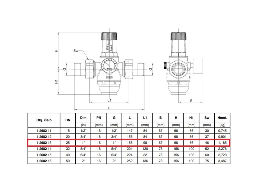 HERZ Ventil tlakový membránový redukčný s filtrom DN 25, prednastaviteľný tlak 1,5 až 6 bar, pre studenú pitnú vodu, do +40°C, PN16
