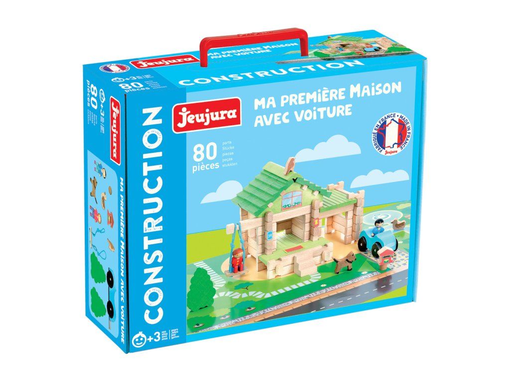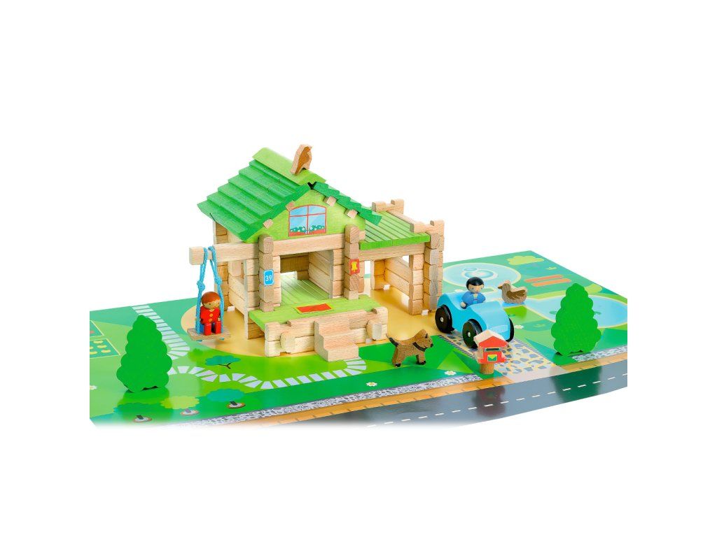 Jeujura Drevená stavebnica 80 dielov Môj prvý dom s autom