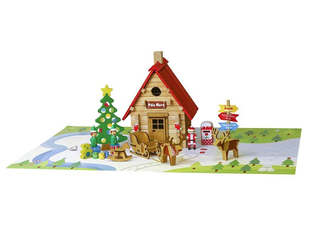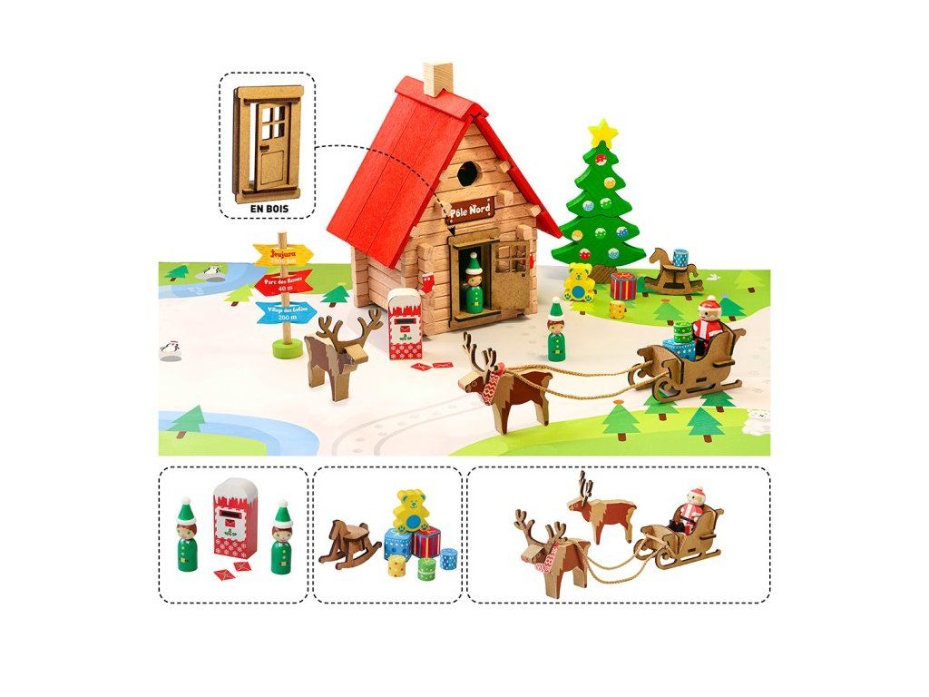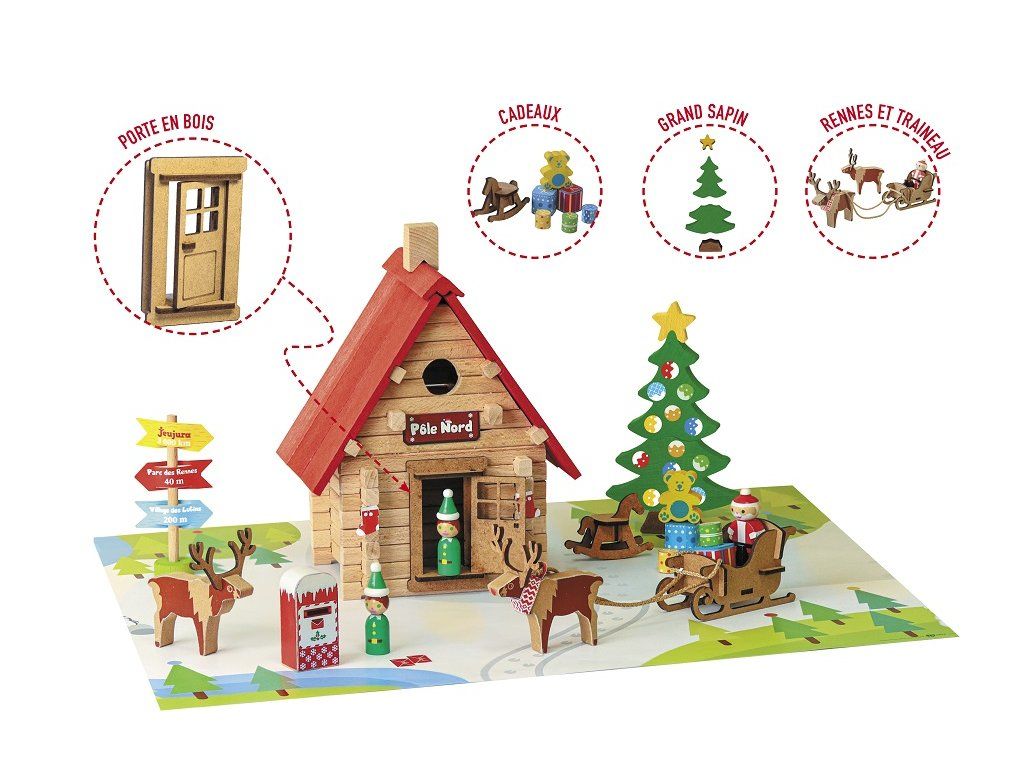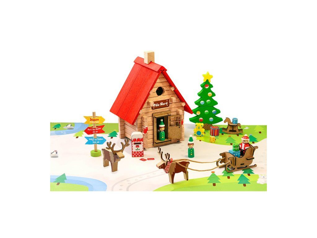 Jeujura Drevená stavebnica 90 dielov Vianočná chata