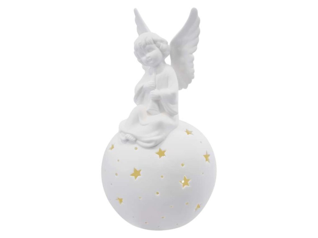 Keramický anjel LED, 29 cm, 2x AA, vnútorný, teplá biela