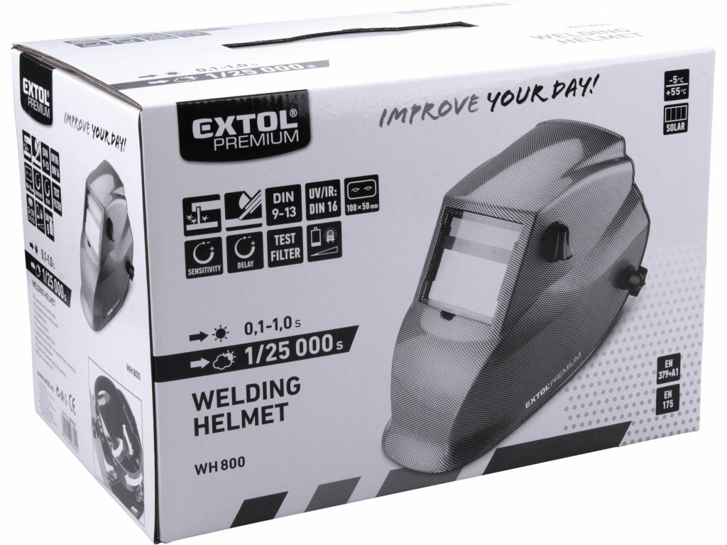 Kukla zváračská samostmievacia, DIN 9-13, vzor karbon, EXTOL PREMIUM