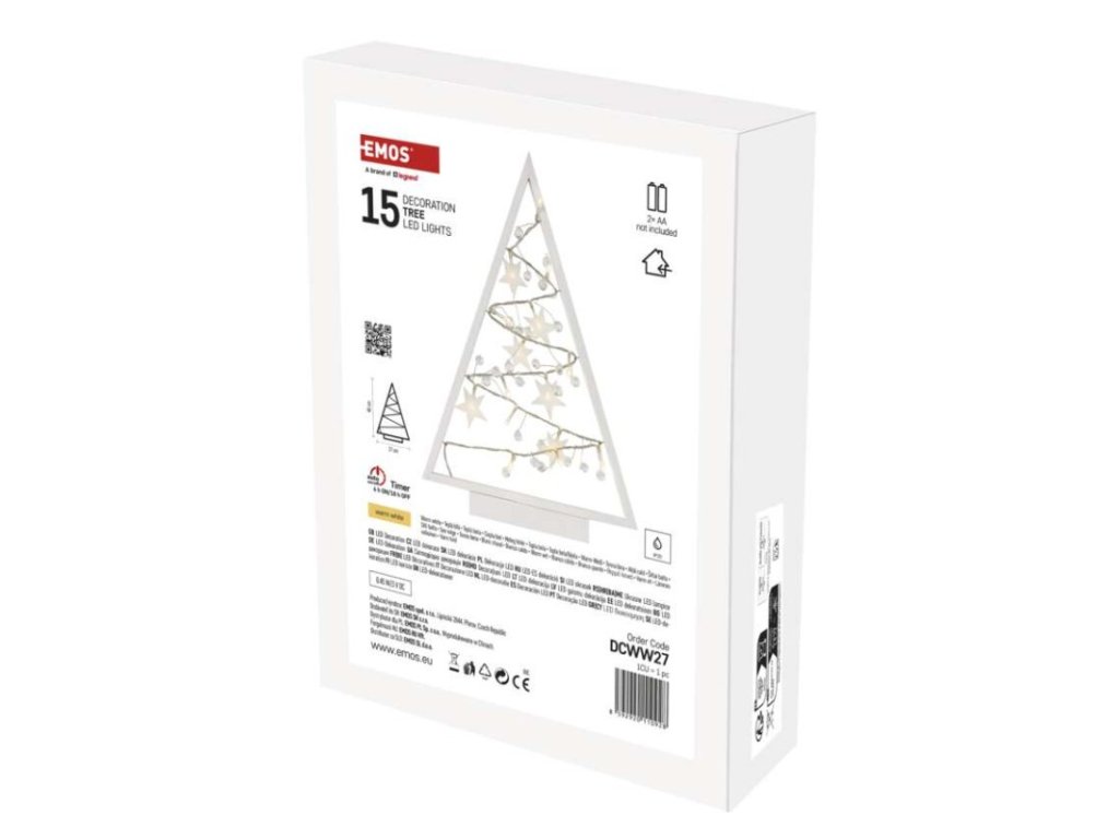 LED dekorácia – svietiaci stromček s ozdobami, 40 cm, 2xAA, vnútorný, teplá biela, časovač