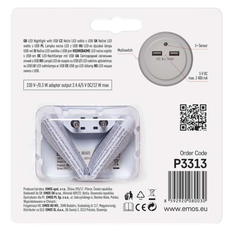 LED nočné svetlo P3313 do zásuvky s 2× USB