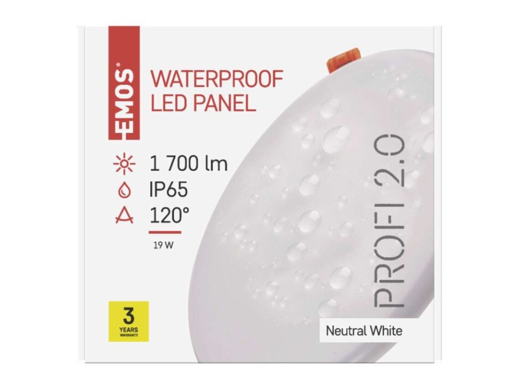 LED panel 185mm, kruhový vstavaný biely, 19W neutr. b., IP65