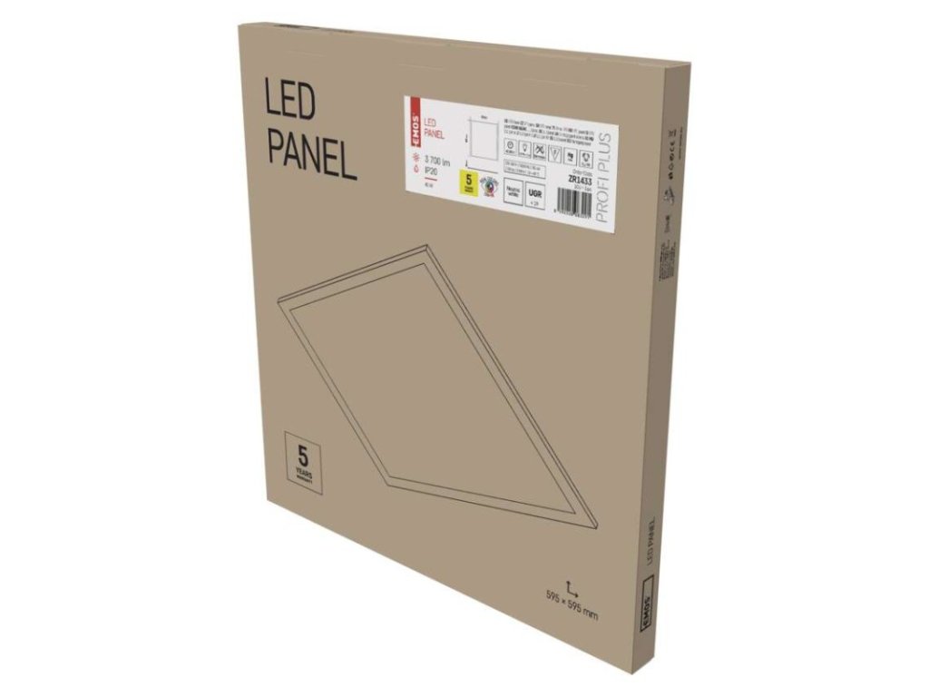 LED panel 60×60, štvorcový vstavaný biely, 40W neutr. b. UGR