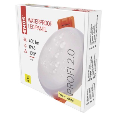 LED panel 75mm, kruhový vstavaný biely, 6W tepl. biela, IP65