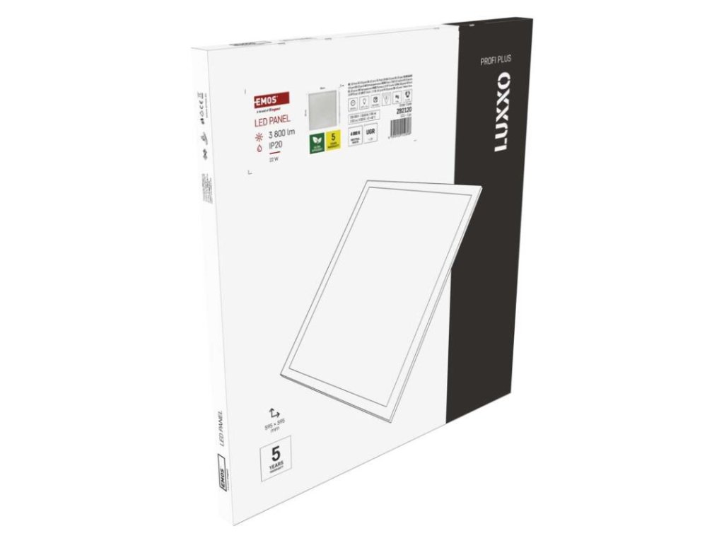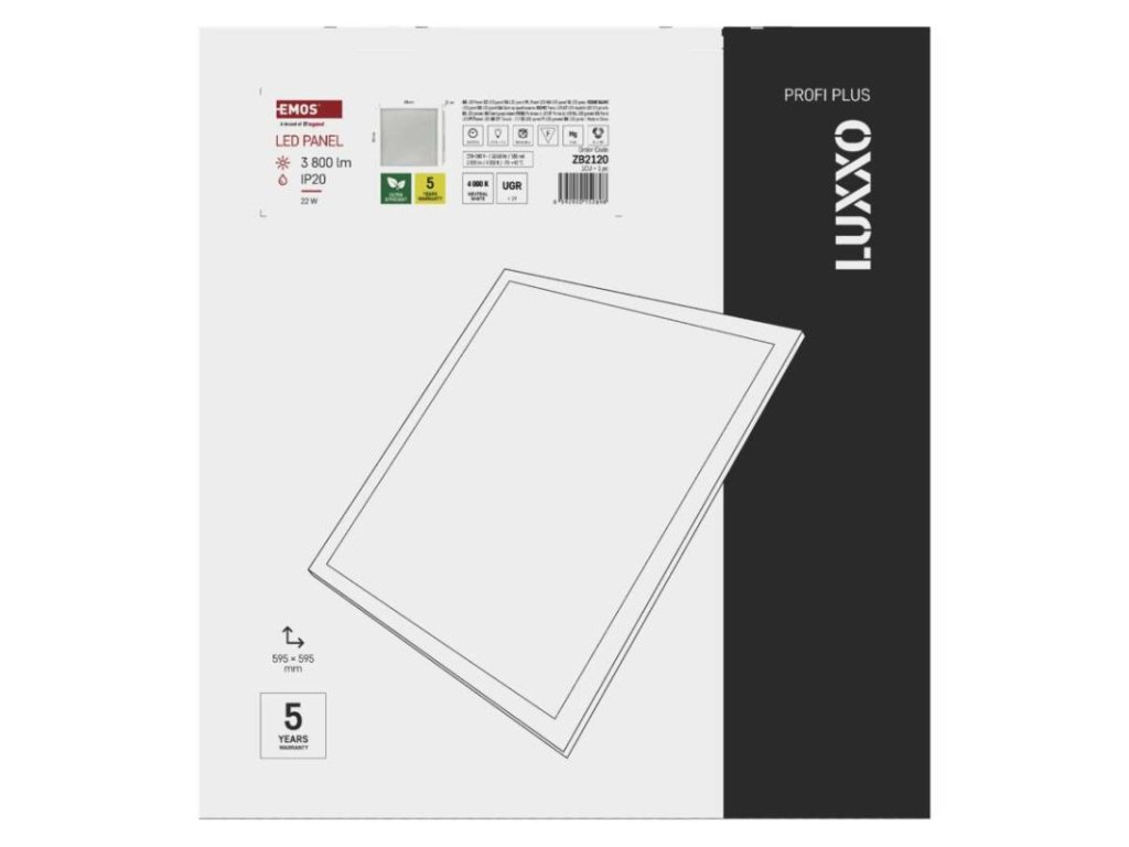 LED panel LUXXO backlit 60×60, štvorcový vstavaný biely, 22W neutrálna b. UGR