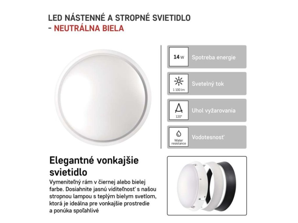 LED prisadené svietidlo, kruhové č/b 14W neutrálna biela