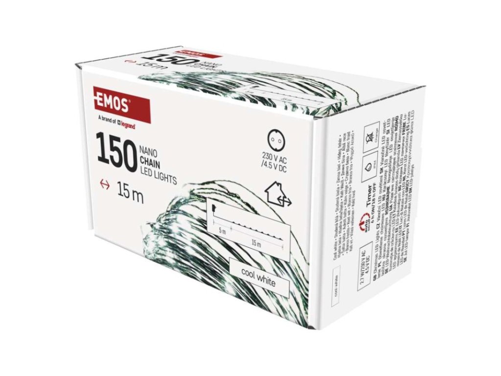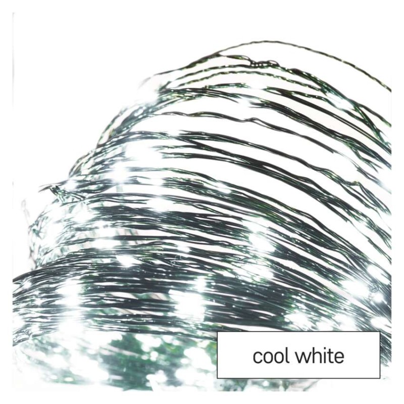 LED vianočná nano reťaz zelená, 15 m, vonkajšia aj vnútorná, studená biela, časovač