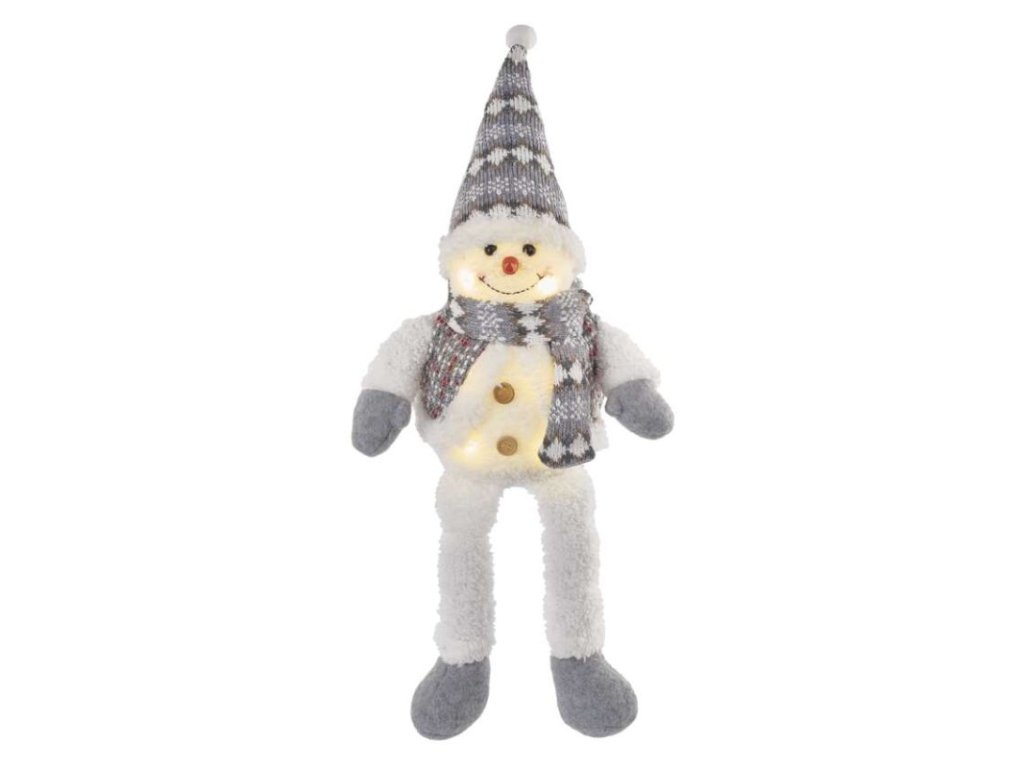 LED vianočný snehuliak sediaci, 31 cm, 3× AA, vnút., teplá biela