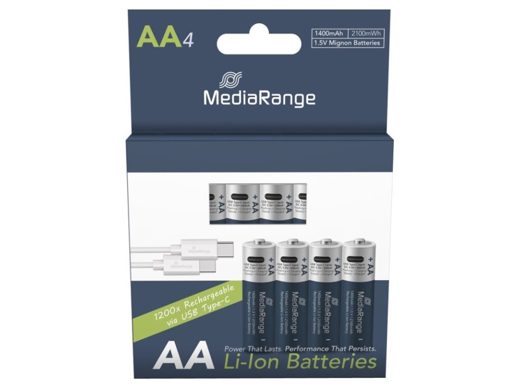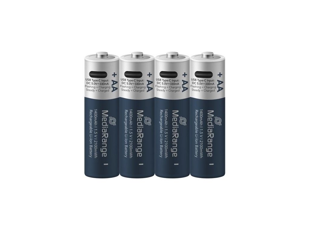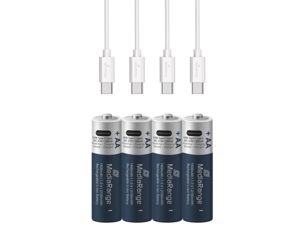 MEDIARANGE Batérie nabíjateľné AA, USB-C, 4ks