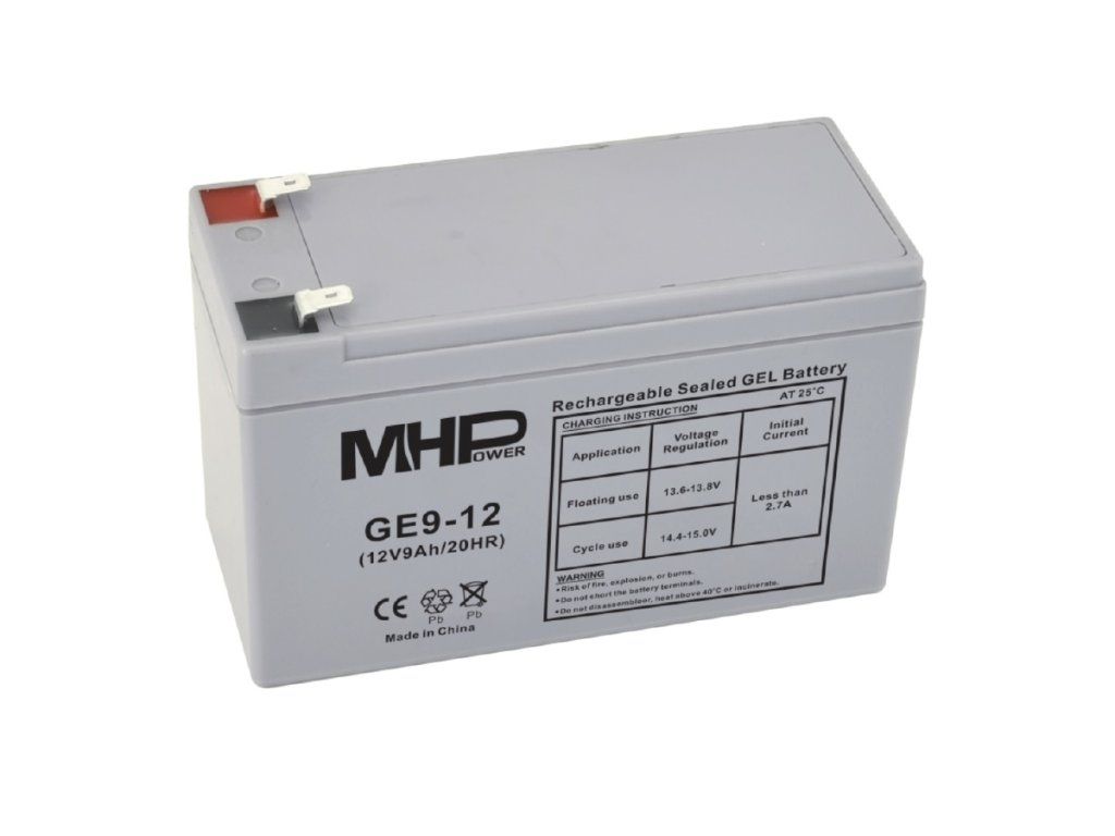 MHPower GE9-12 Gelový akumulátor 12V/9Ah, Faston F2 - 6,3mm, Deep Cycle
