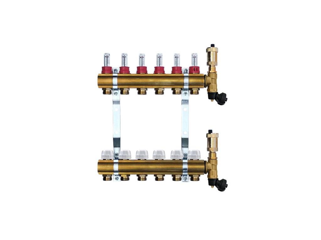 Mosadzný rozdeľovač s automatickým odvzdušnením - 6 cestný