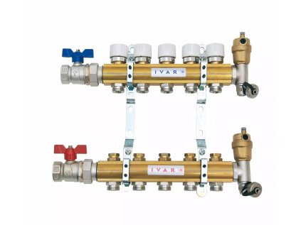 Rozdělovač - s kulovými uzávěry, 1" x EK, 2cestný