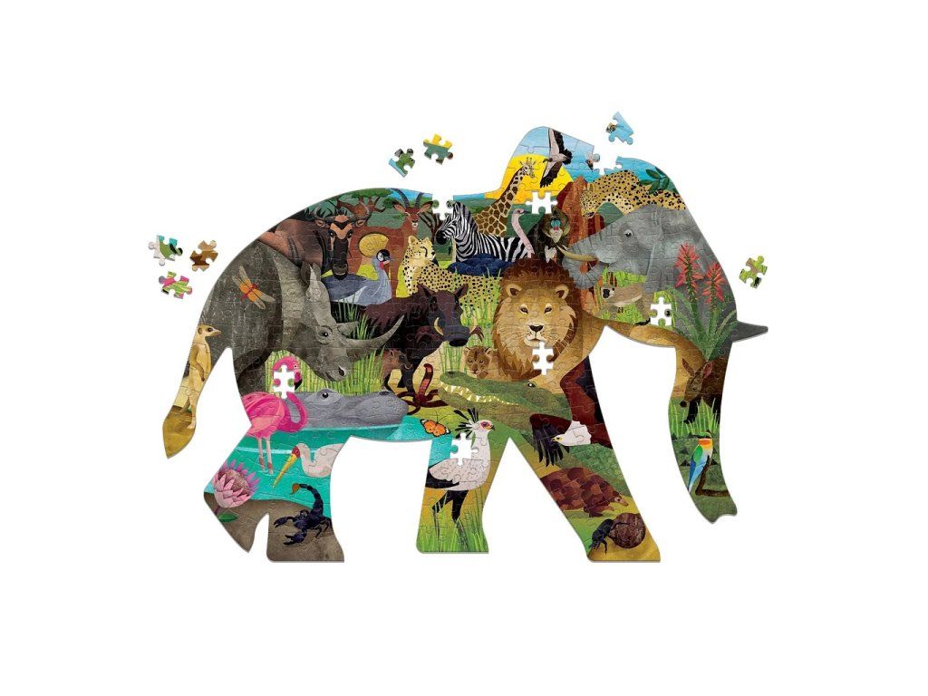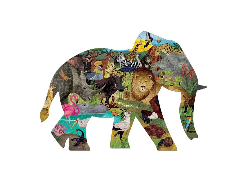Mudpuppy Puzzle Africké safari v tvare slona 300 dielikov