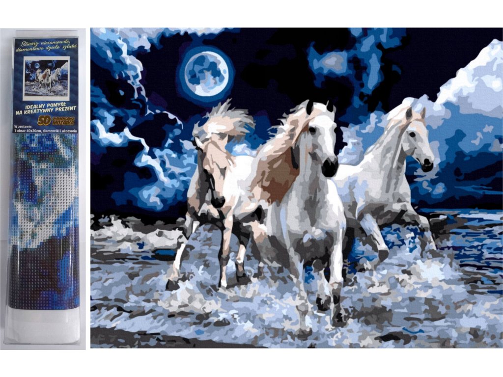 NORIMPEX Diamantové malování Bílí hřebci 30x40cm