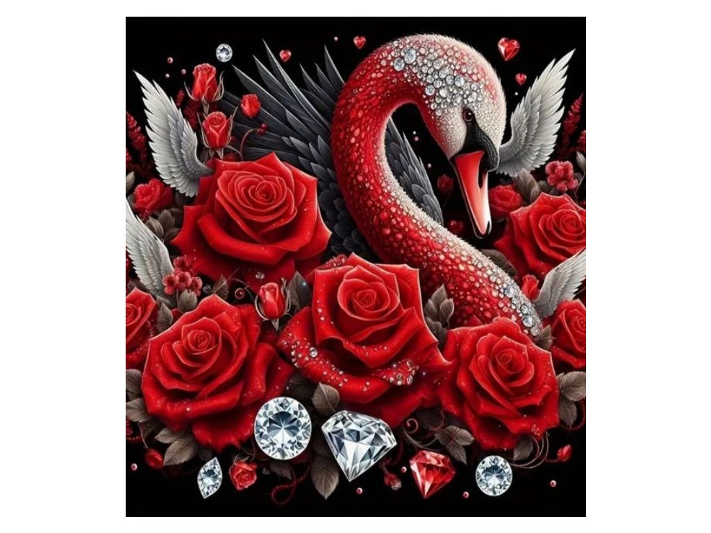NORIMPEX Diamantové malování Labuť s růžemi a diamanty 30x40cm