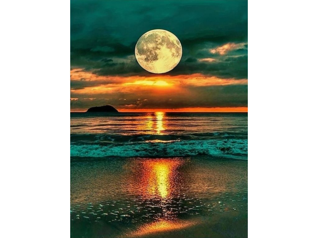 NORIMPEX Diamantové malování Úplněk nad oceánem 30x40cm
