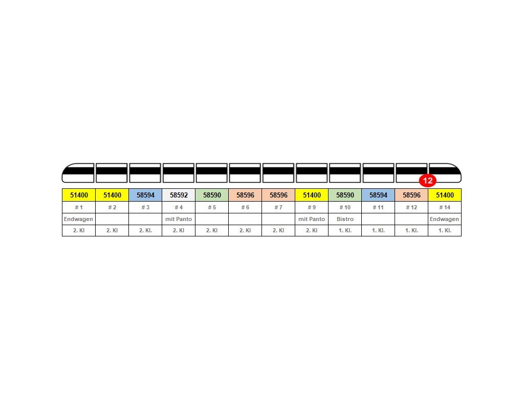 Piko Sada 2 vagónov pre BR 412 ICE 4 osobného 2. tr. a reštauračného 1./2. tr. DB AG VI - 58590