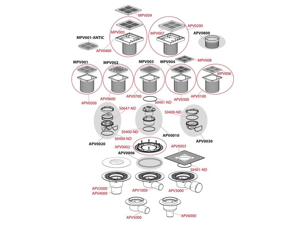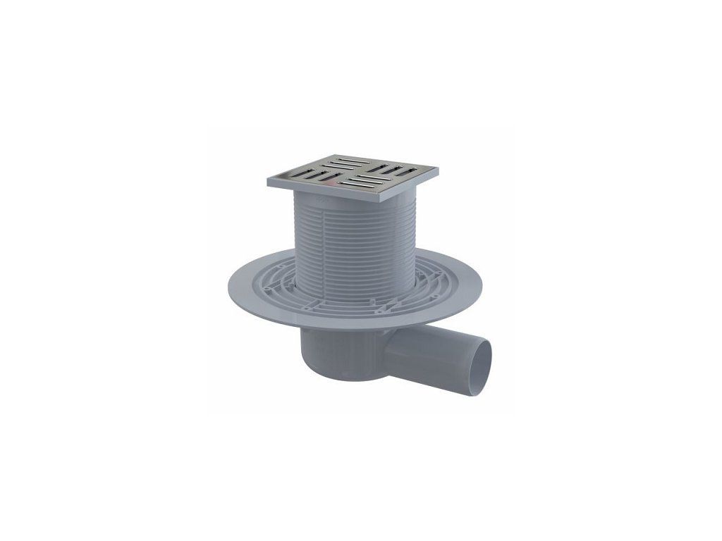 Podlahová vpusť 105×105/50 mm bočná, mriežka nerez, vodná zápachová uzávera