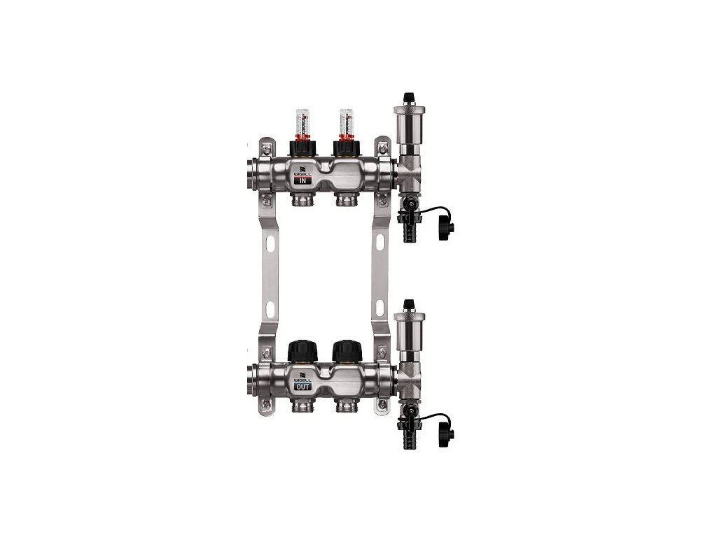 Podlahový rozdeľovač WIGELL, 2 okruhy, nerez + automatické odvzdušňovanie