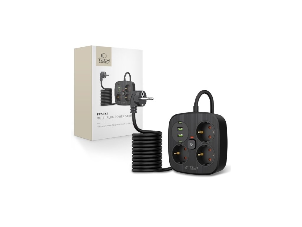 Predlžovací kábel 3 zásuvky 2m TECHPROTEC PCS3X4 Black