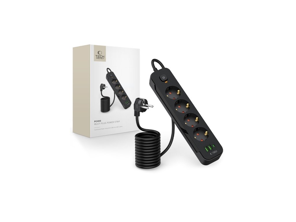 Predlžovací kábel 4 zásuvky 2m TECHPROTEC PCL4X3