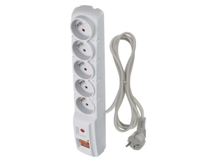 Prepäťová ochrana – 5 zásuviek, 5m, sivá