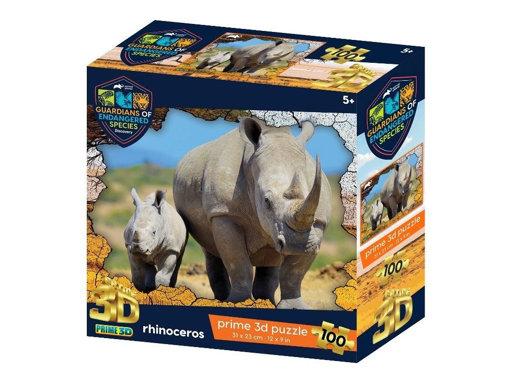 PRIME 3D Puzzle Animal planet: Ohrožené druhy - Nosorožec 3D 100 dílků