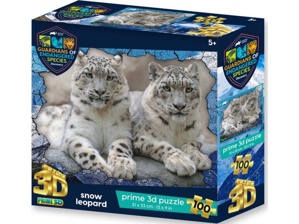 PRIME 3D Puzzle Animal planet: Ohrožené druhy - Sněžní leopardi 3D 100 dílků