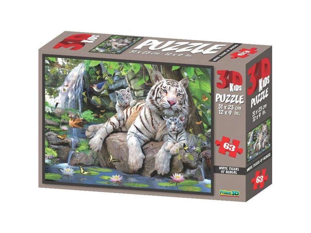 PRIME 3D Puzzle Bílí tygři bengálští 3D 63 dílků
