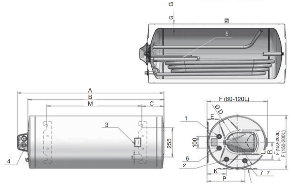 | 6. Připojení výměníku tepla:G 1/2" | .F (width) = 474 mm | |||