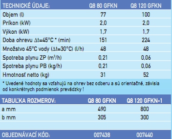 Ohrievače tejto typovej rady GFKN sú závesné a vyrábajú sa s 2 kW výkonom. Sú určené na miesta s menšími nárokmi na množstvo a periodicitu odberu TÚV. Sú to plynové zariadenia skupiny A1, čiže spaliny nie sú zvlášť odvádzané. Vzhľadom na túto skutočnosť musia byť tieto spotrebiče umiestnené mimo obytné priestory a priestory nepriamo vetrateľné, pritom umiestnenie musí byť v súlade s STN EN 1775 v náväznosti s TPP 704 01 (STN 38 6441).