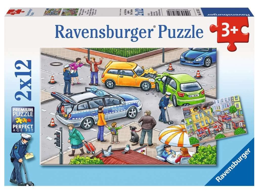 RAVENSBURGER Puzzle S modrým světlem na cestách 2x12 dílků