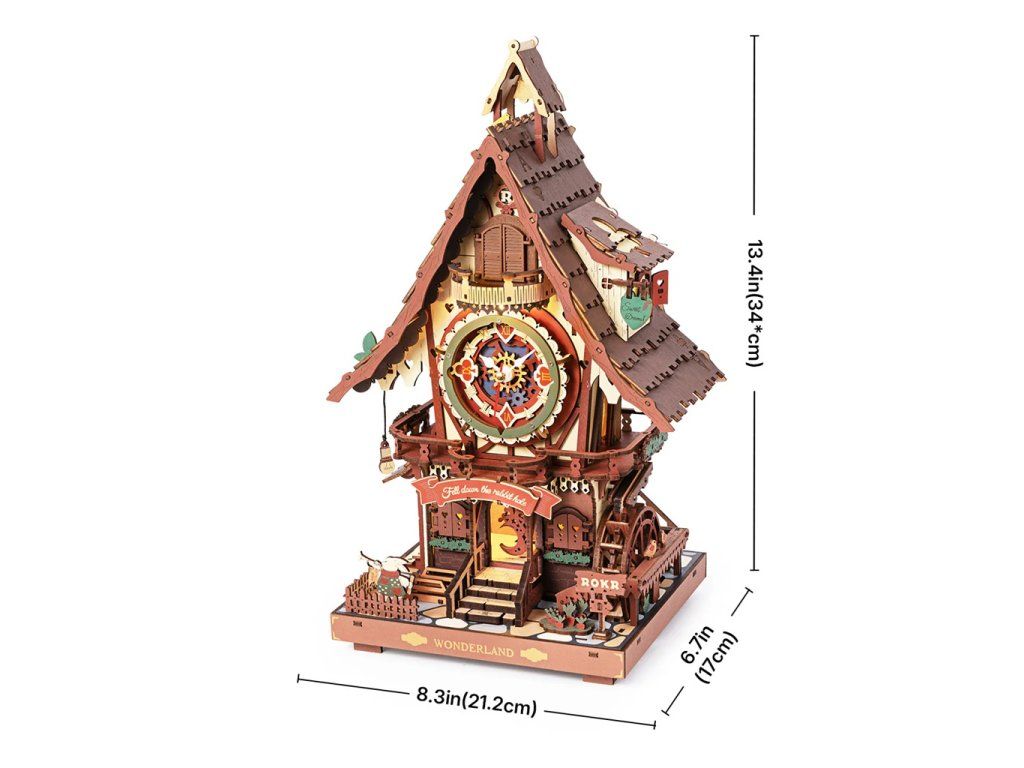 RoboTime 3D drevená mechanická skladačka Kukučkové hodiny farebné