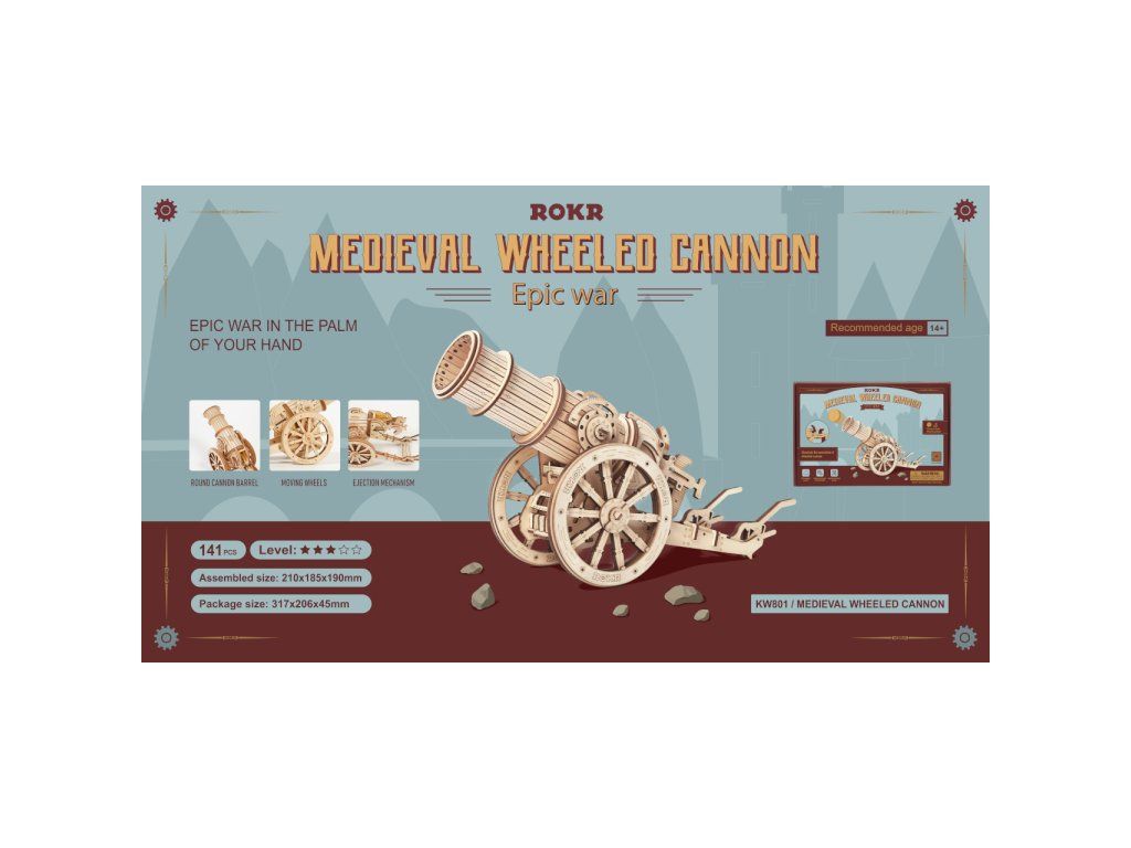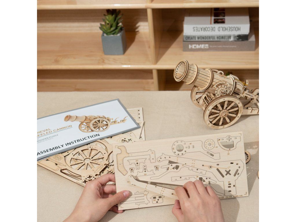 RoboTime 3D drevená mechanická skladačka Obliehací kanón