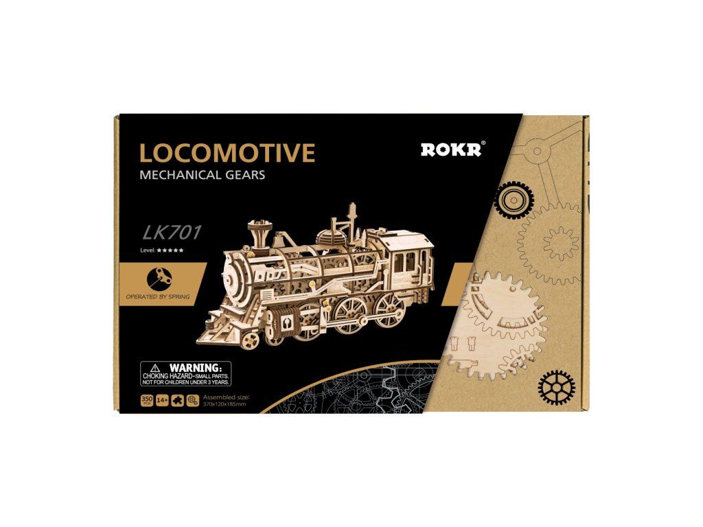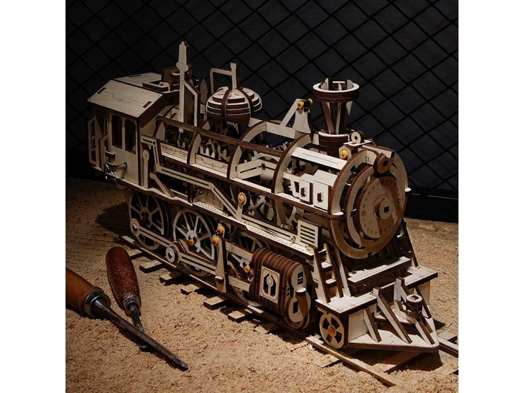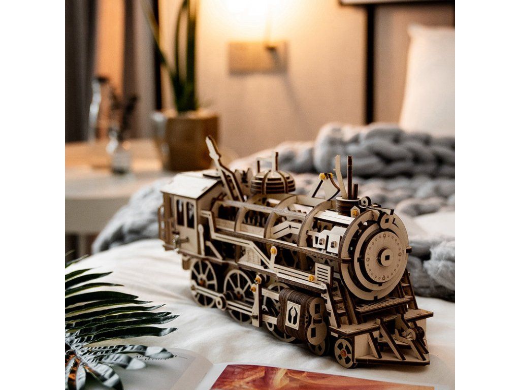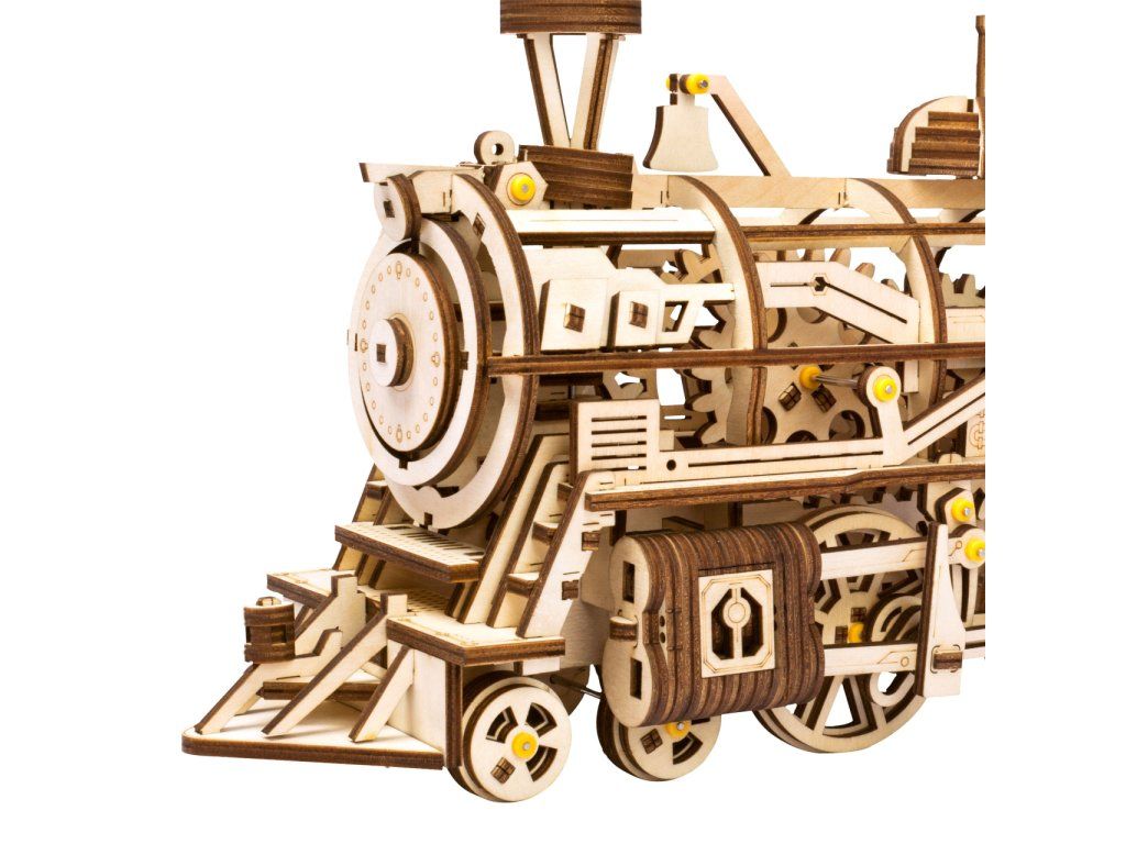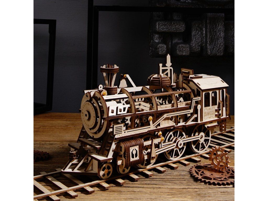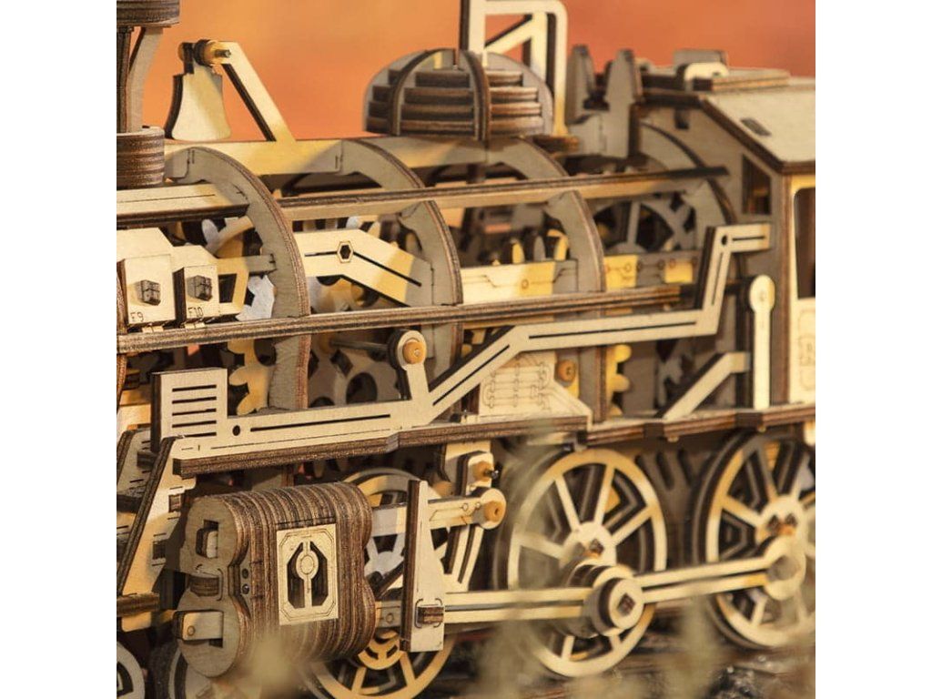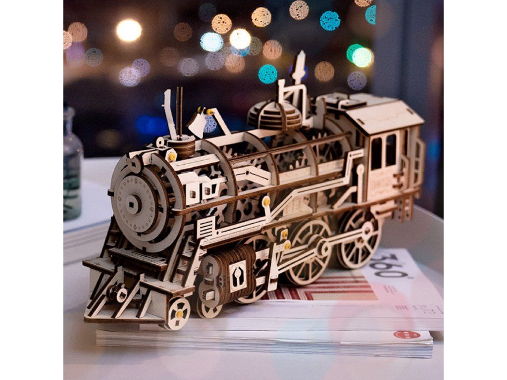 RoboTime 3D drevená mechanická skladačka Parná lokomotíva