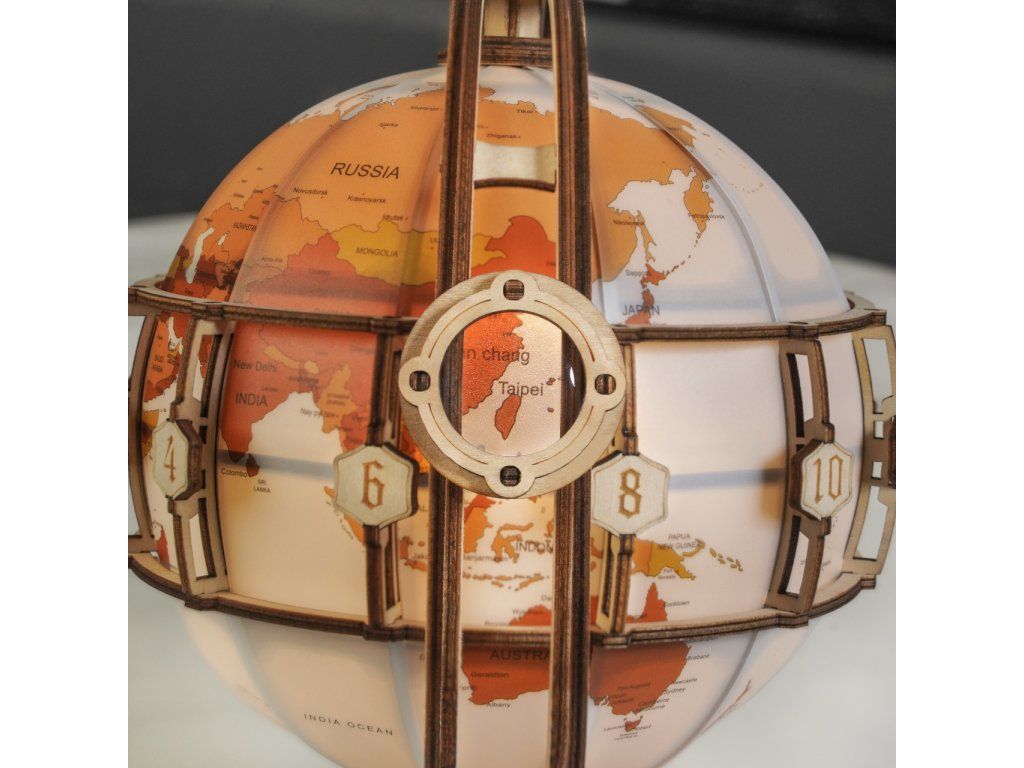 RoboTime 3D drevená mechanická skladačka Svietiaci glóbus