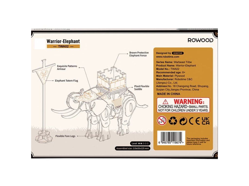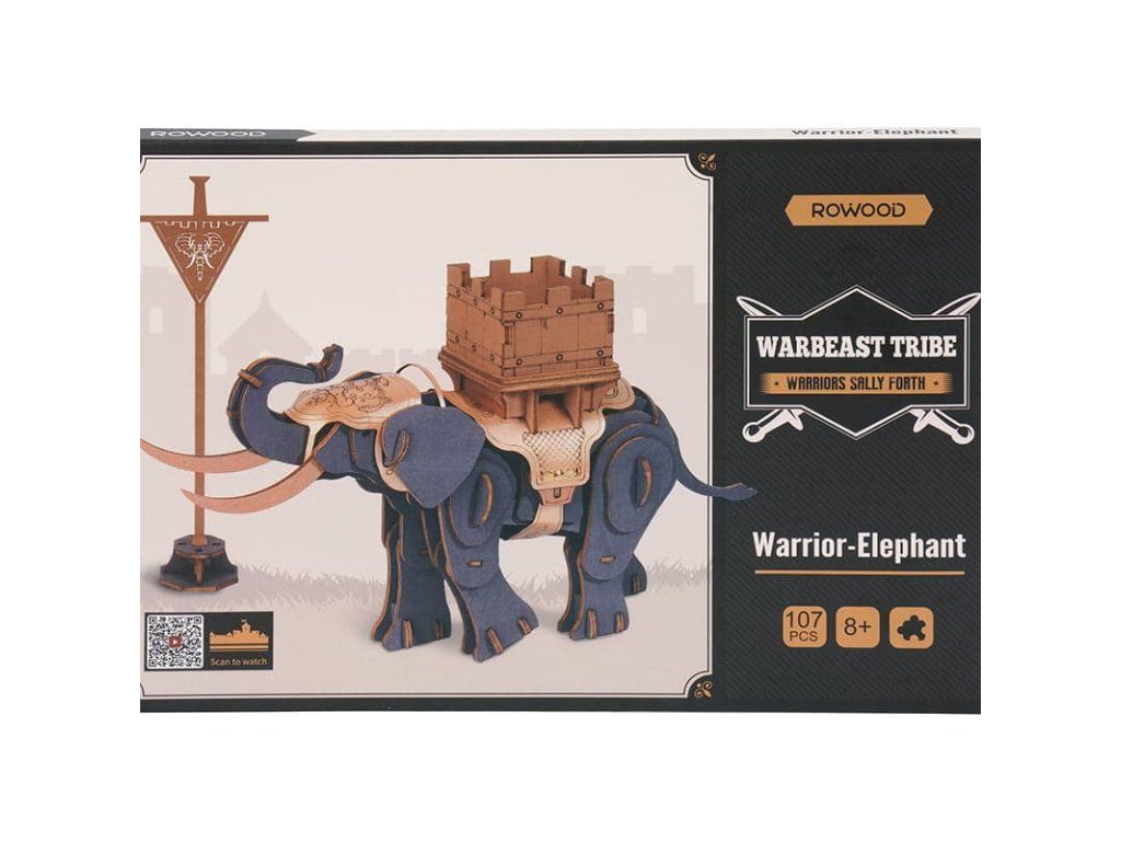 RoboTime 3D drevená skladačka Bojovný slon