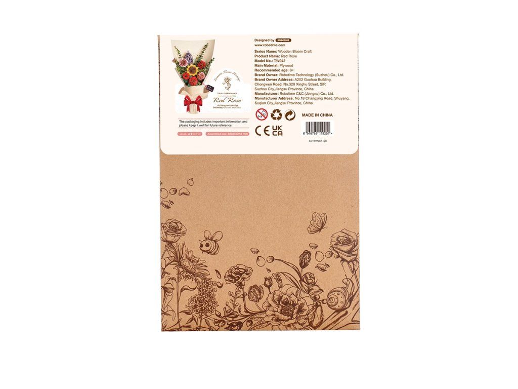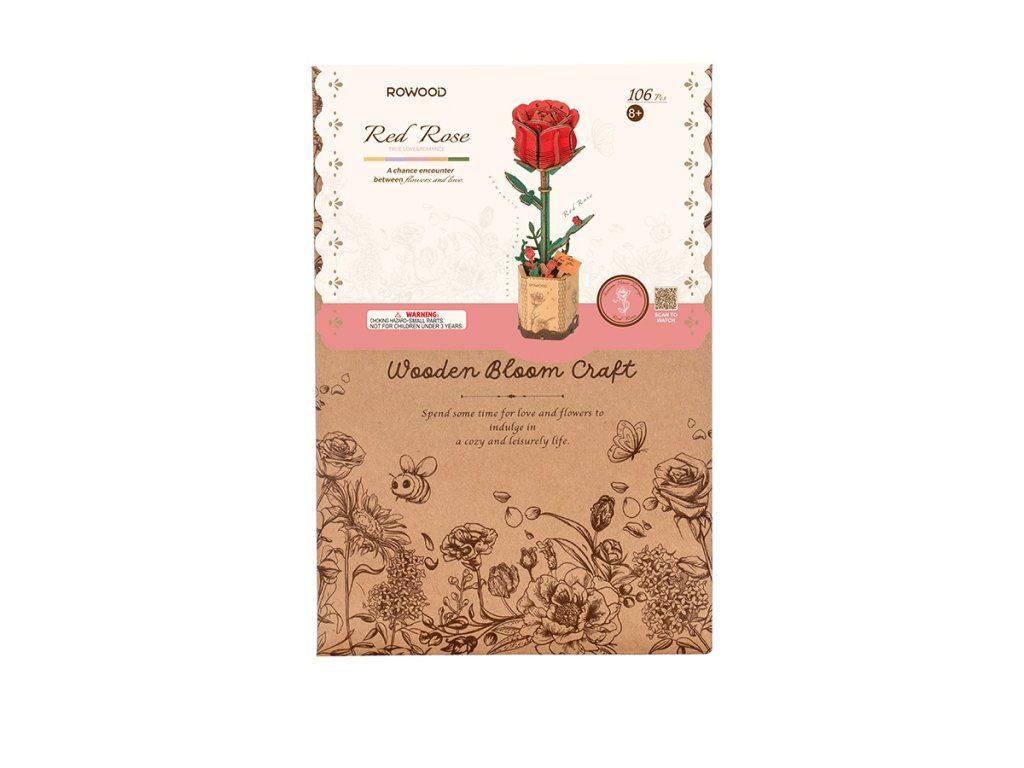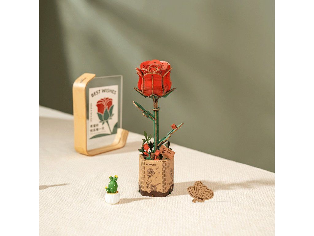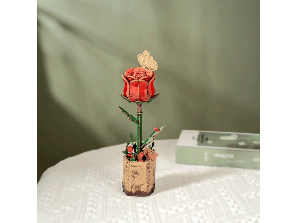 RoboTime 3D drevená skladačka Červená ruža