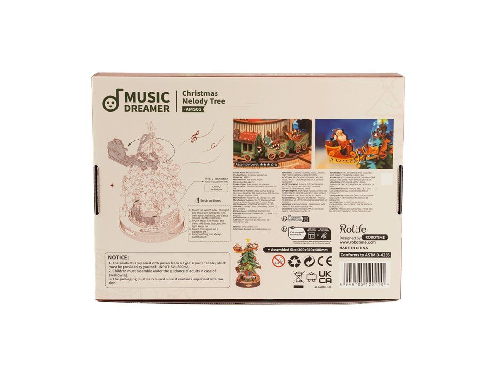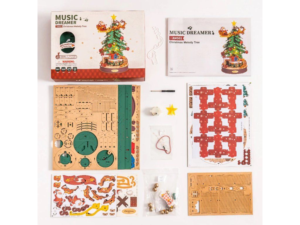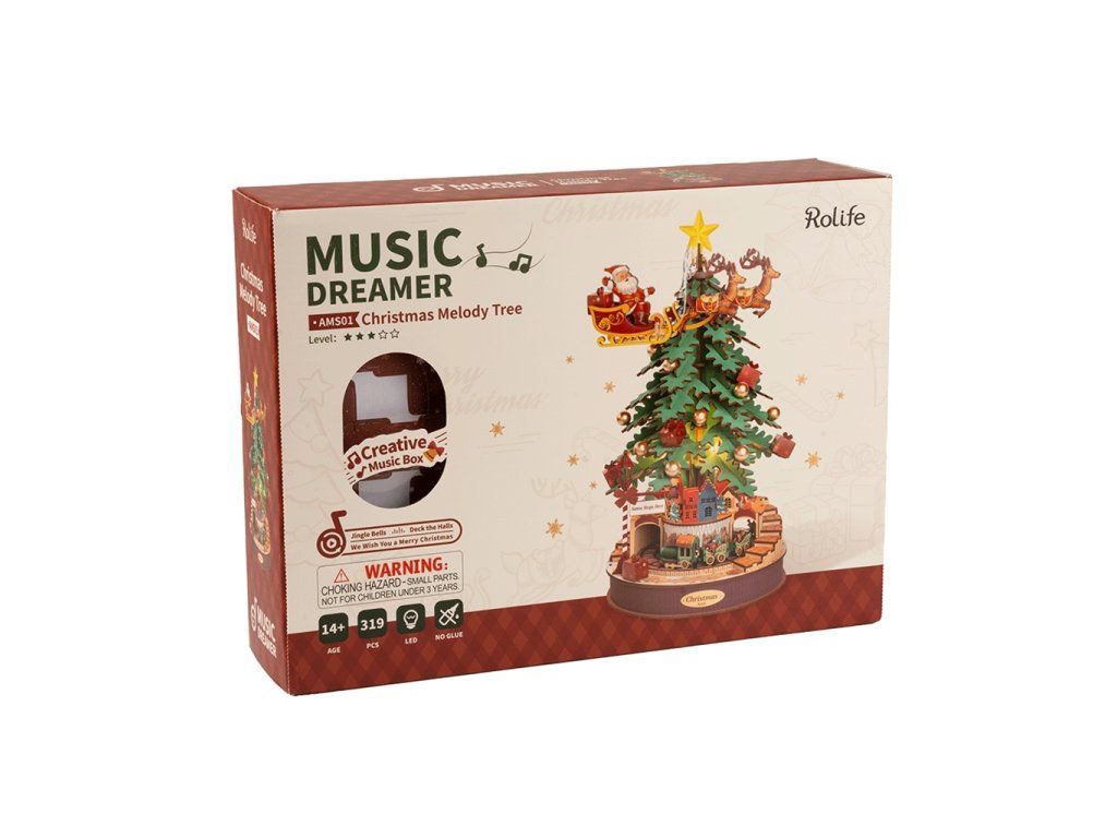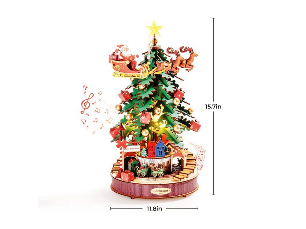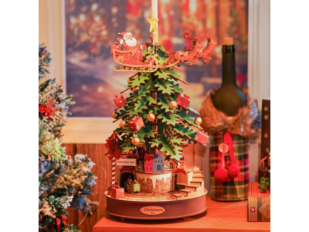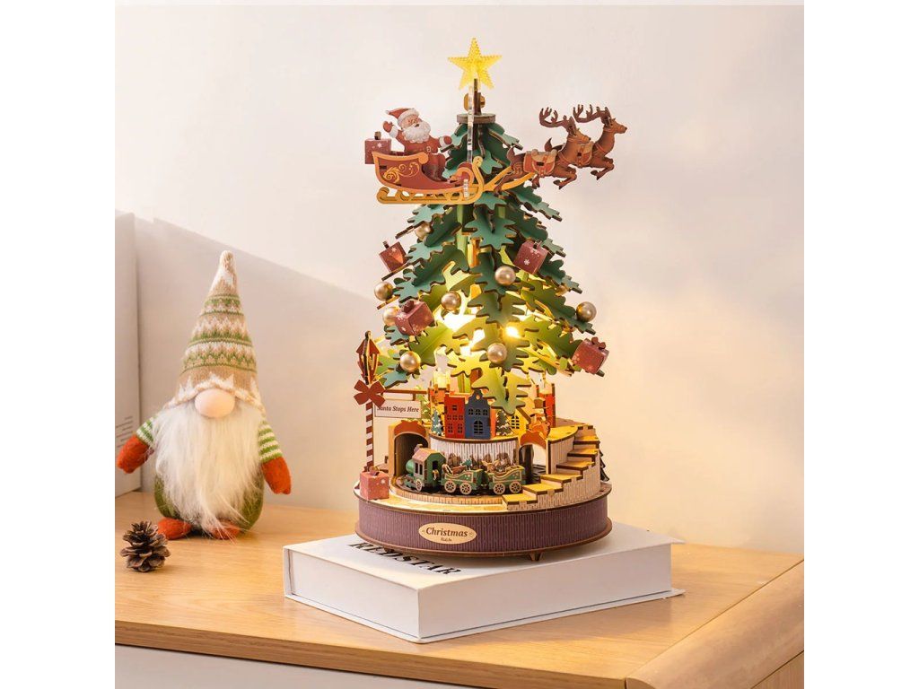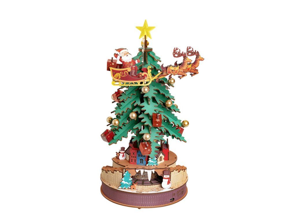 RoboTime 3D drevená skladačka hracej skrinky Vianočný stromček
