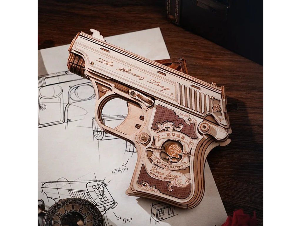 RoboTime 3D drevená skladačka Mini pištoľ Justice Guard