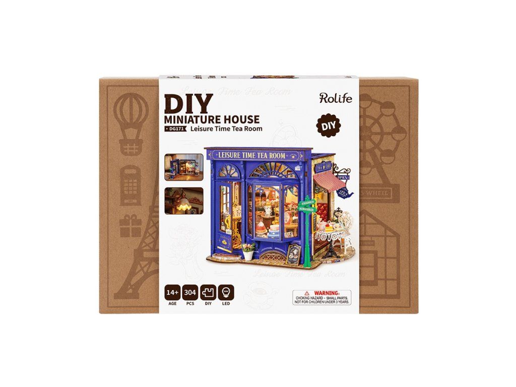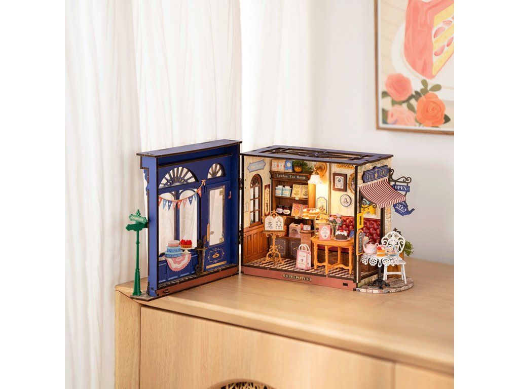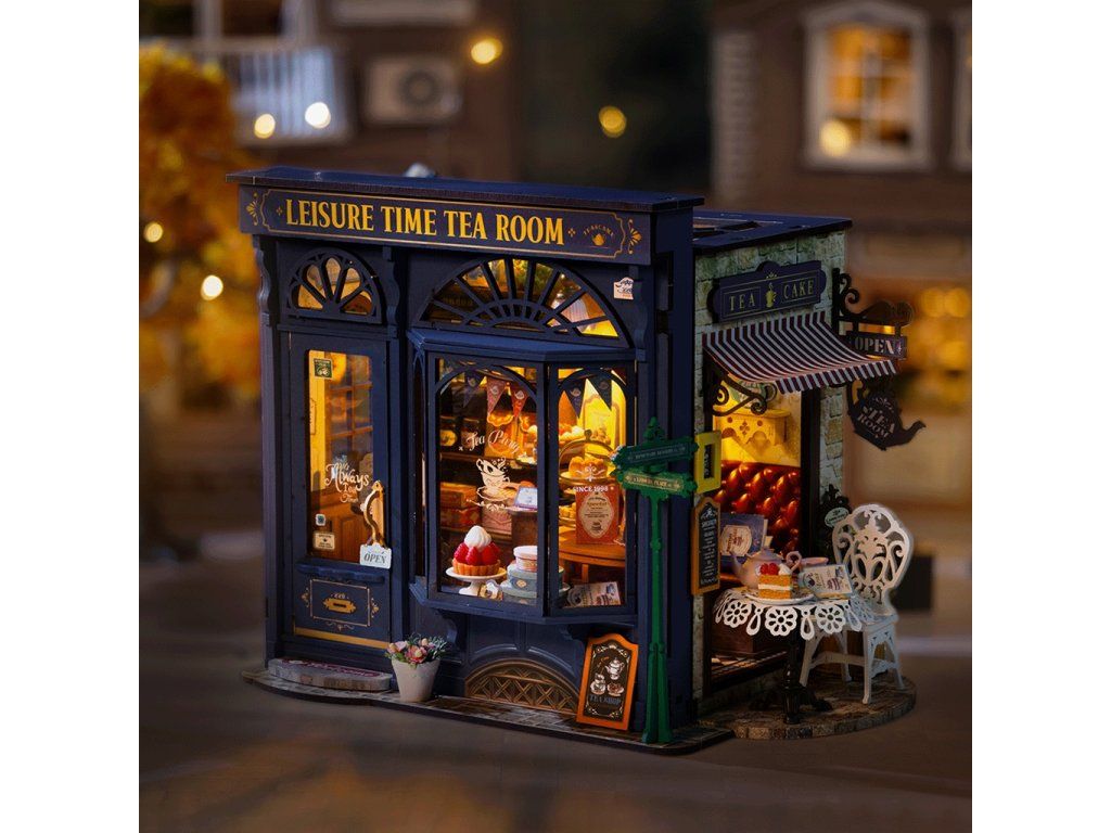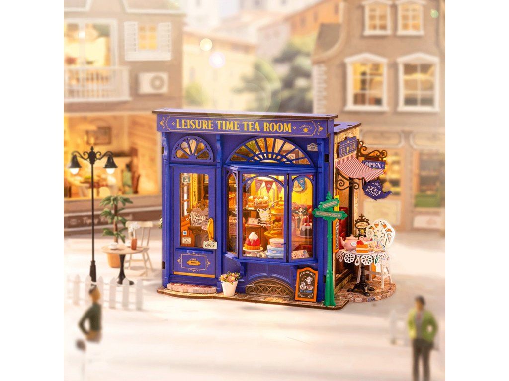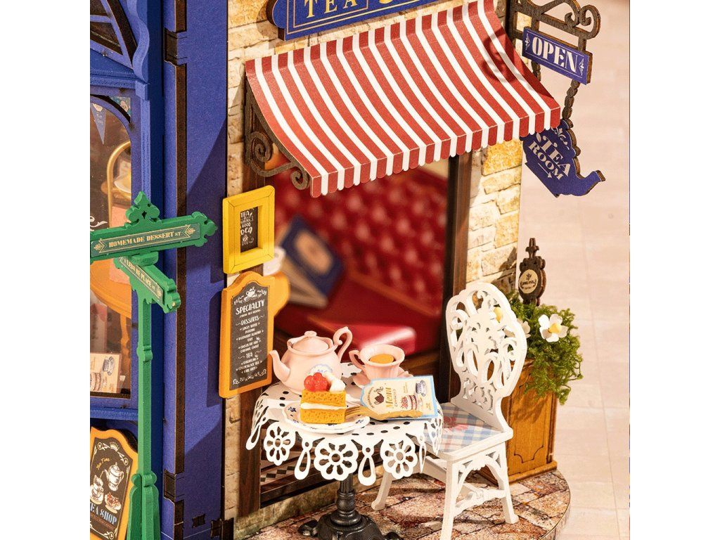 RoboTime 3D drevená skladačka Miniatúra domčeka Čajovňa pre chvíle pohody