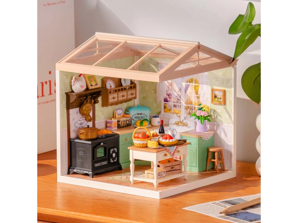 RoboTime 3D drevená skladačka Miniatúra domčeka Farmárska kuchyňa