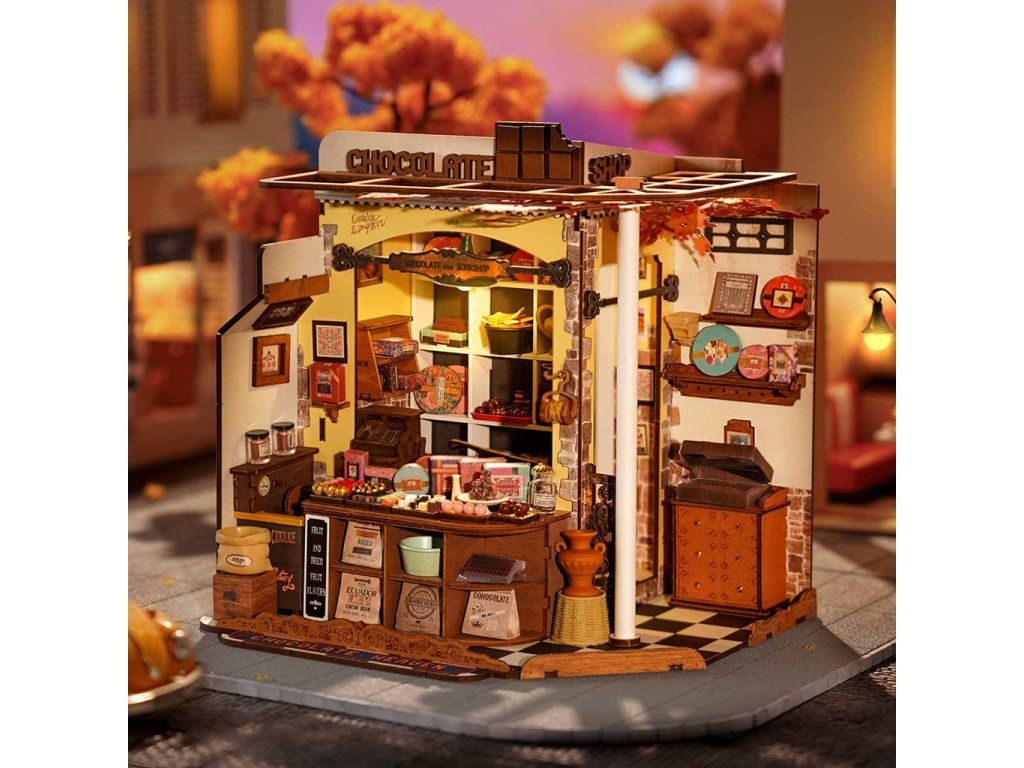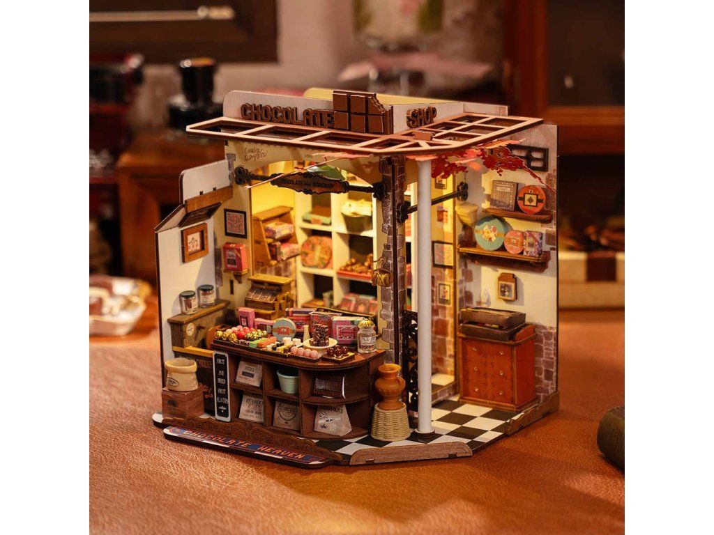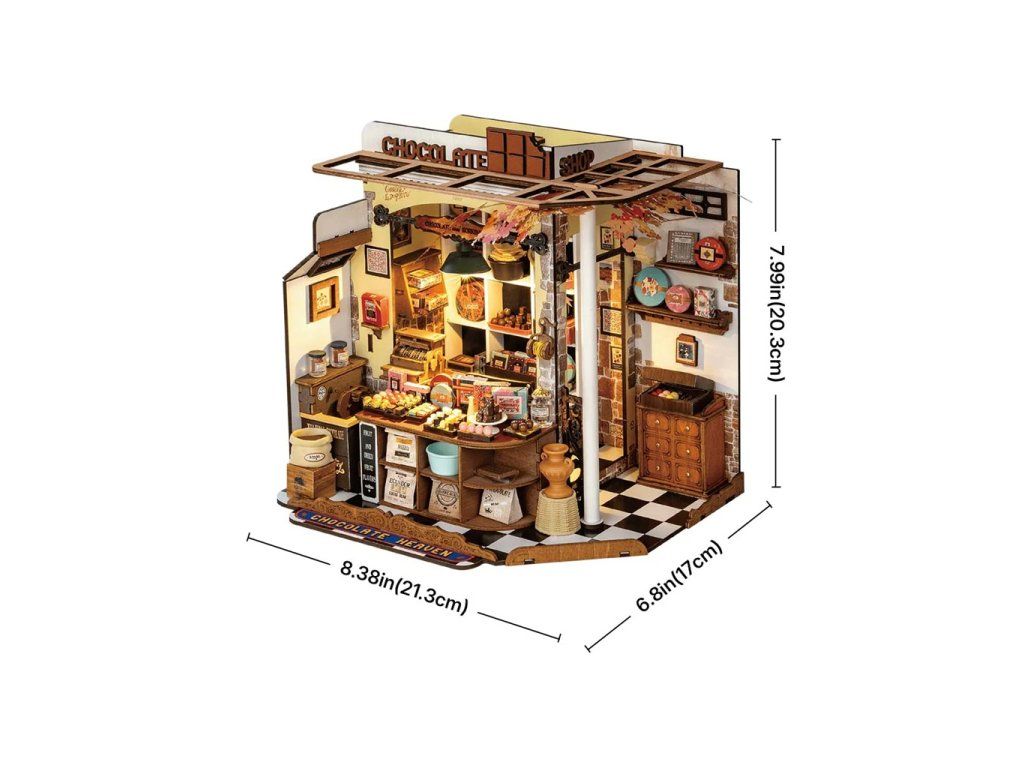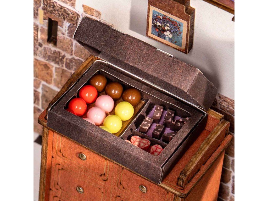 RoboTime 3D drevená skladačka Miniatúra domčeka Henryho čokoládovňa