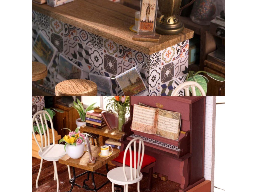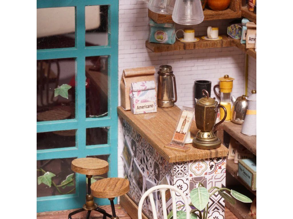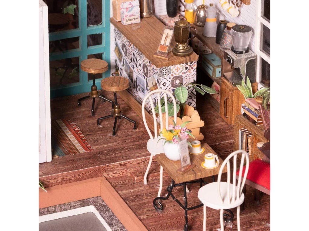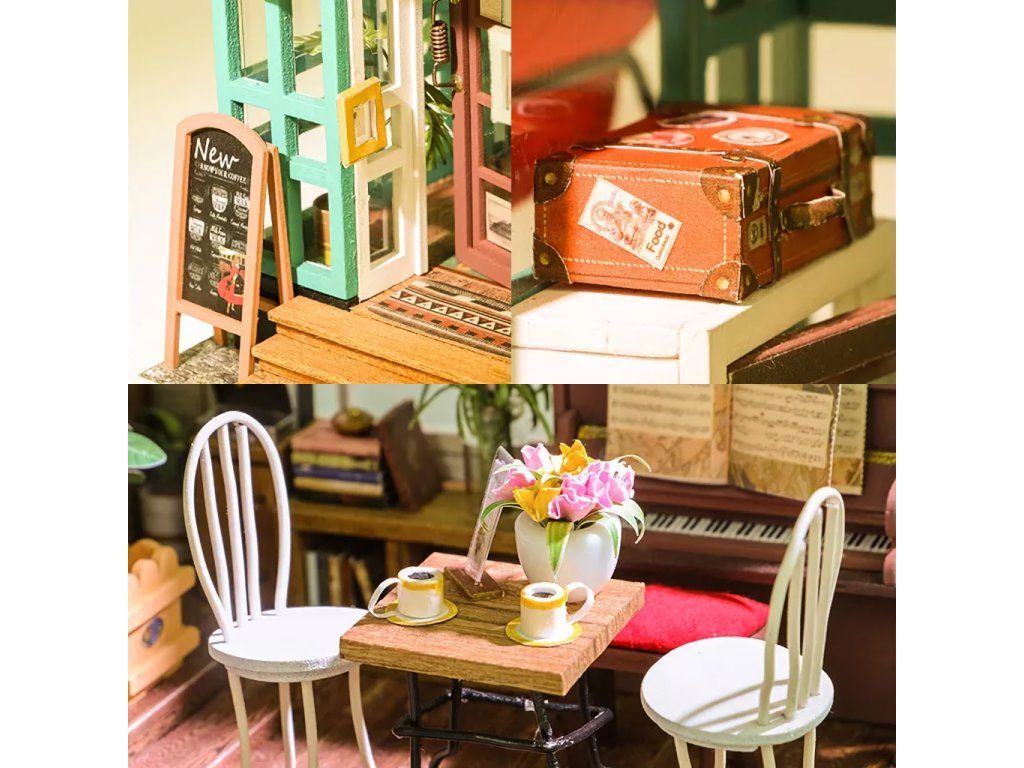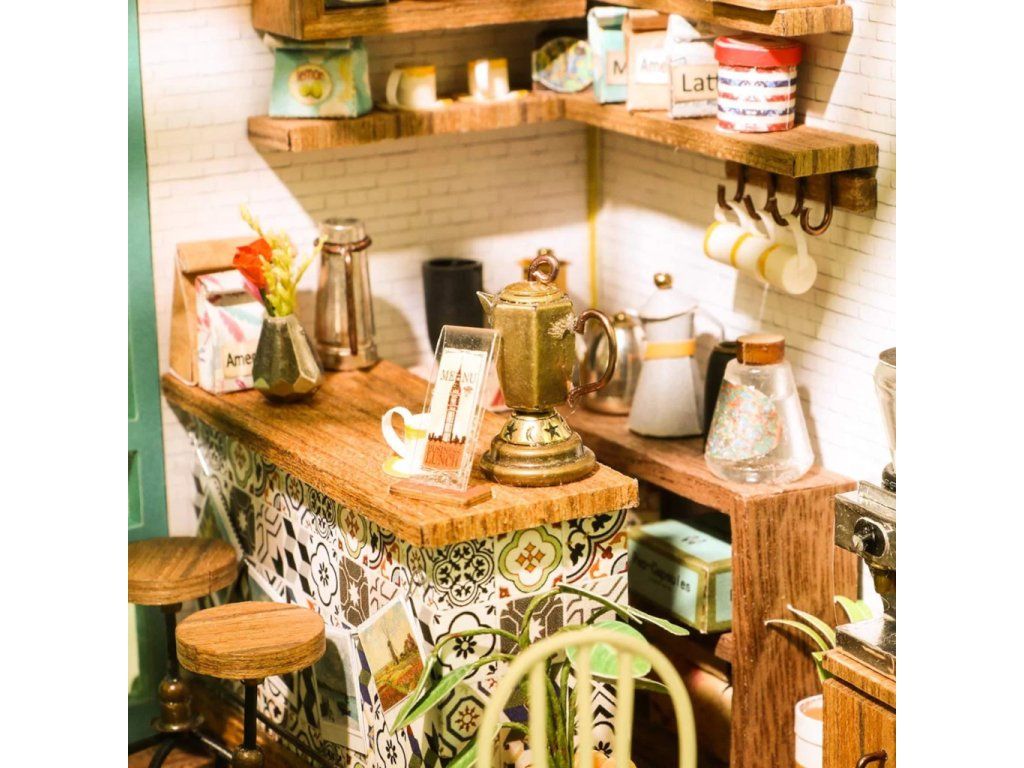 RoboTime 3D drevená skladačka Miniatúra domčeka Kaviareň