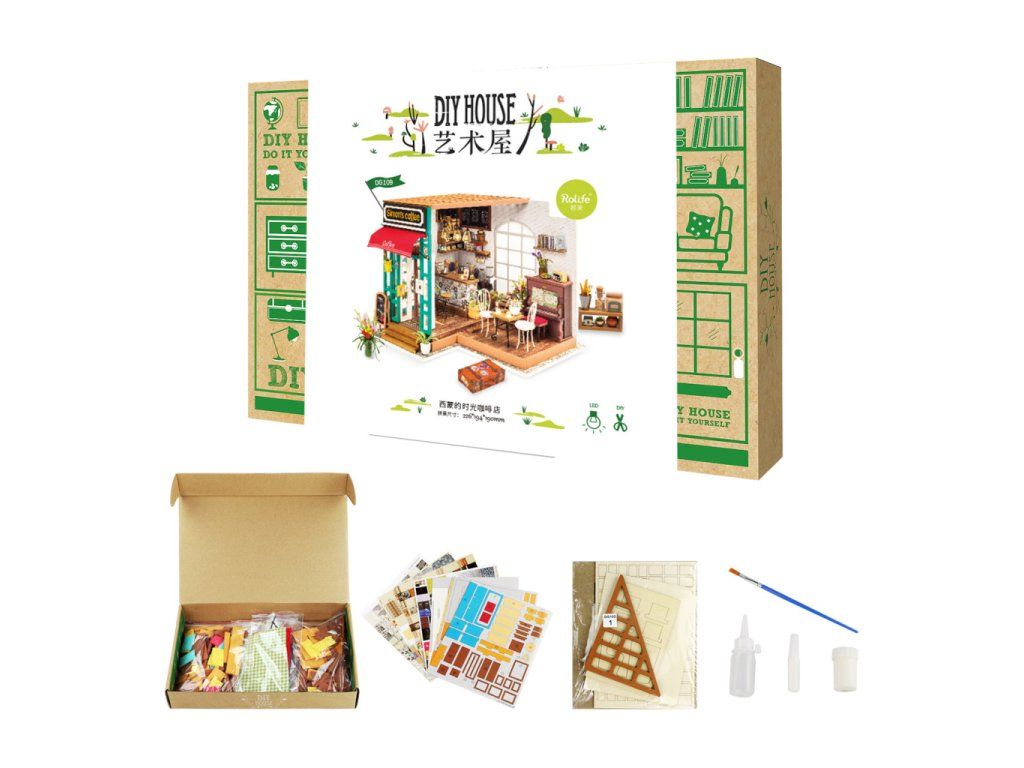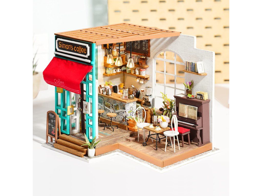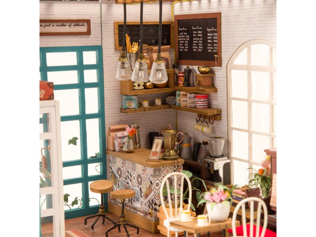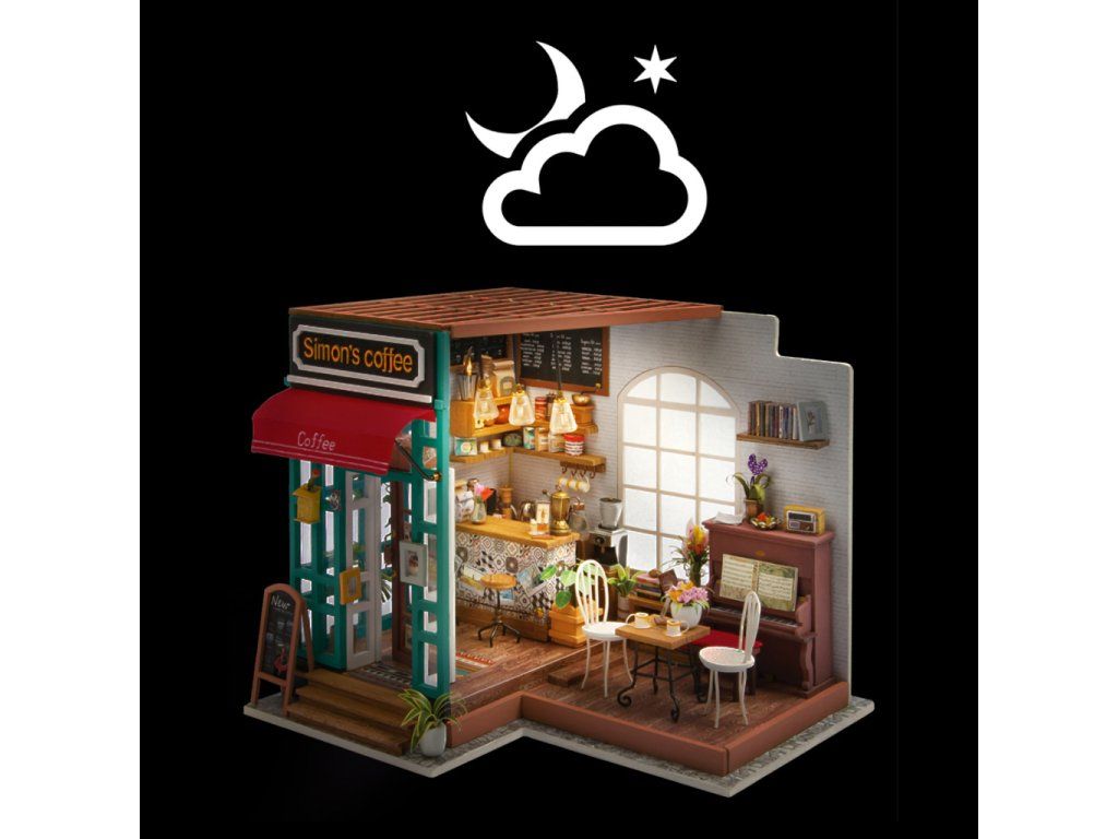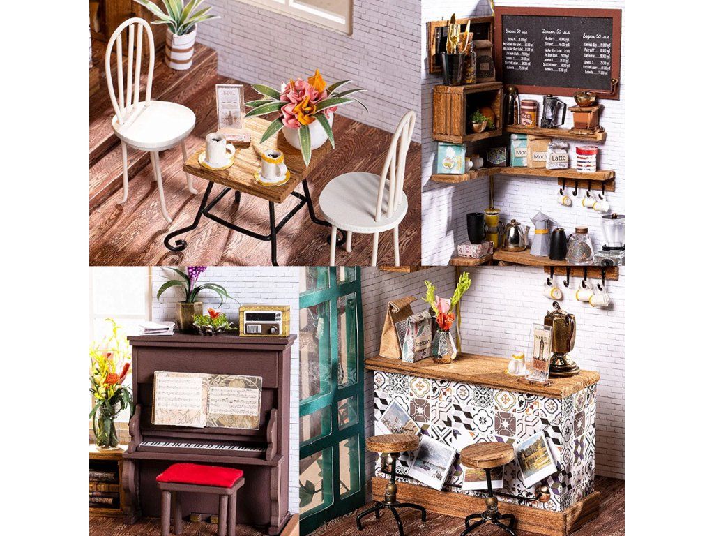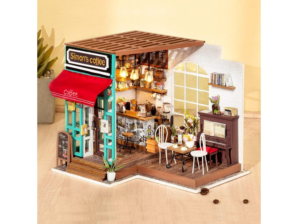 RoboTime 3D drevená skladačka Miniatúra domčeka Kaviareň
