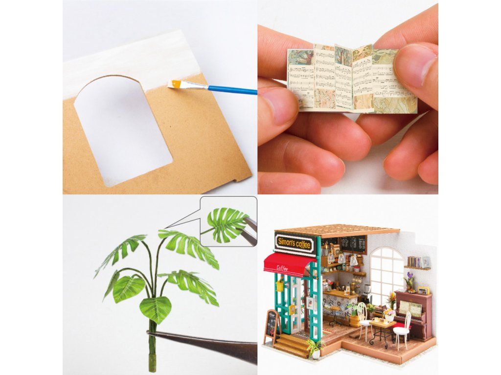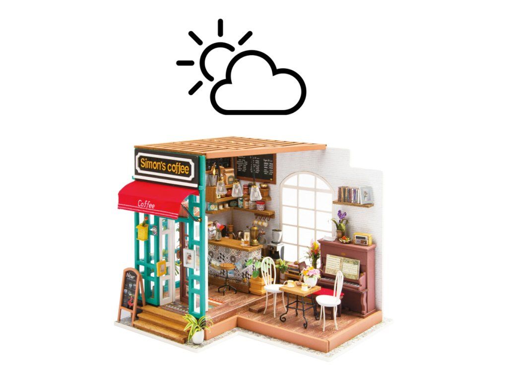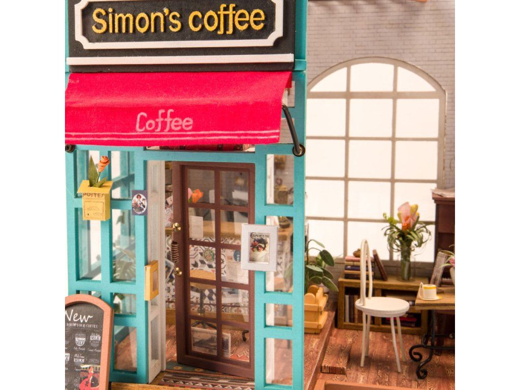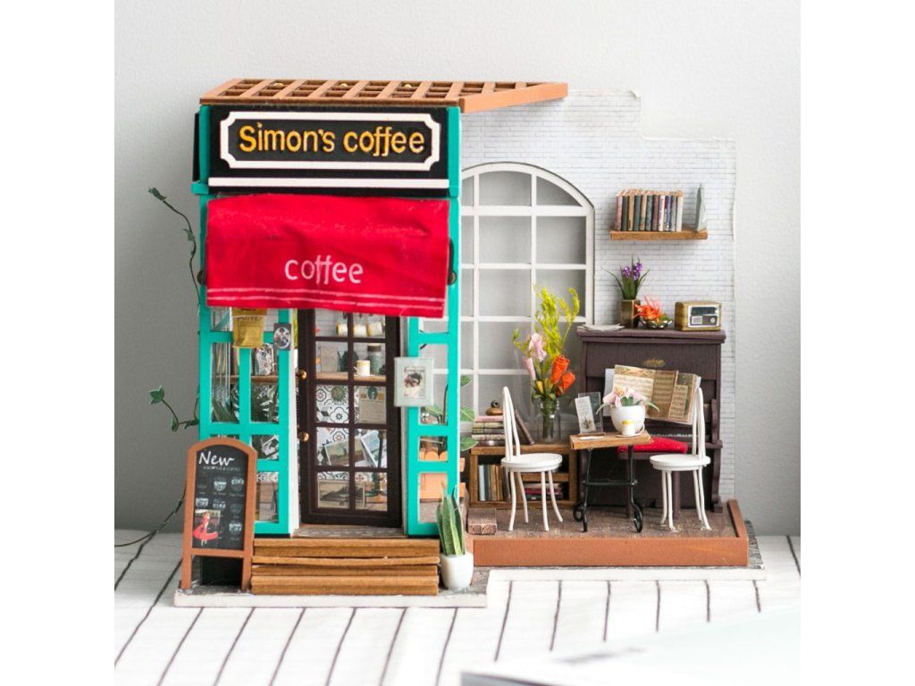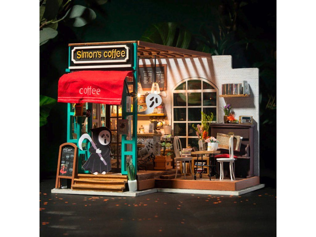 RoboTime 3D drevená skladačka Miniatúra domčeka Kaviareň