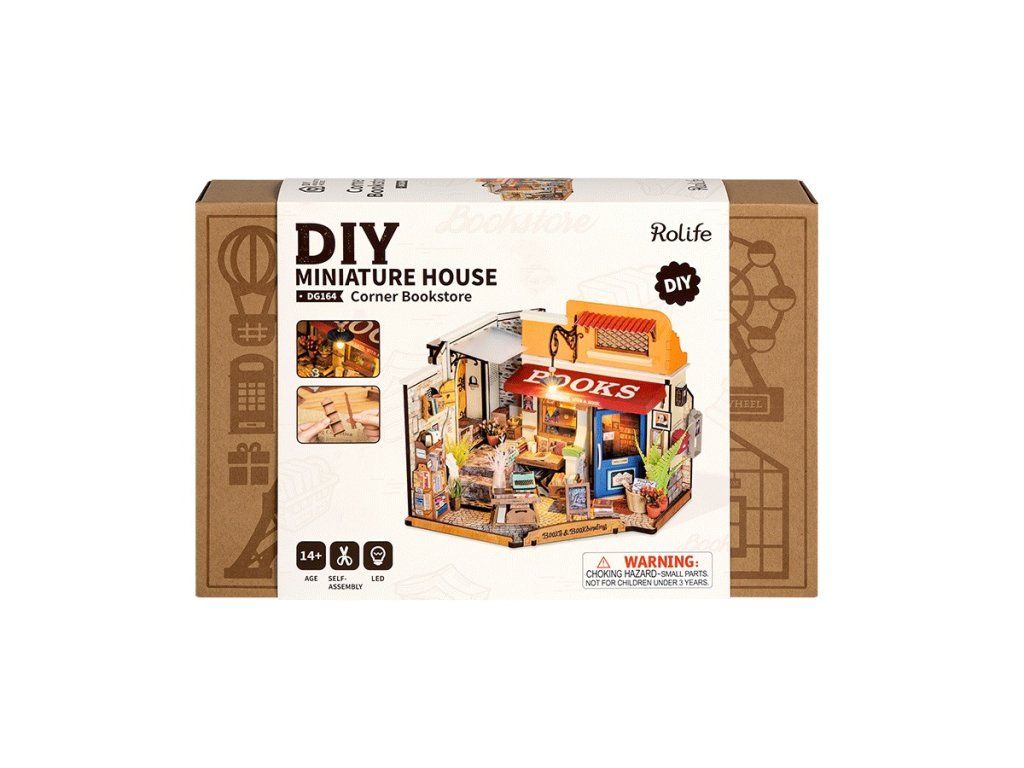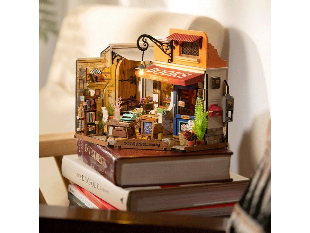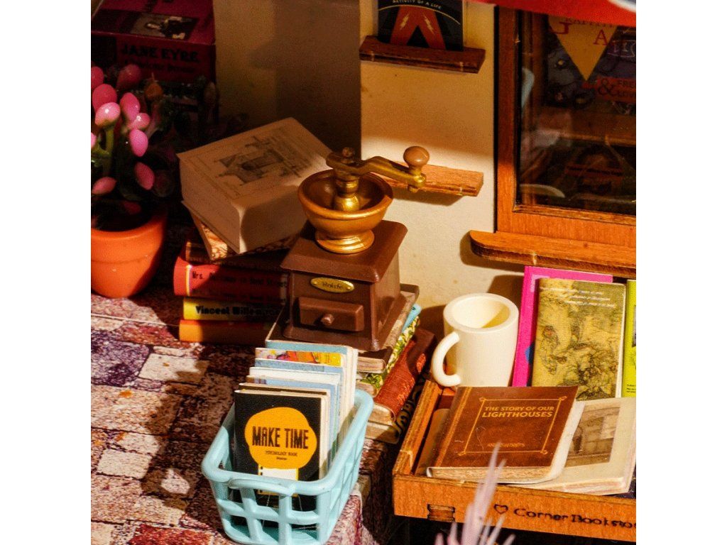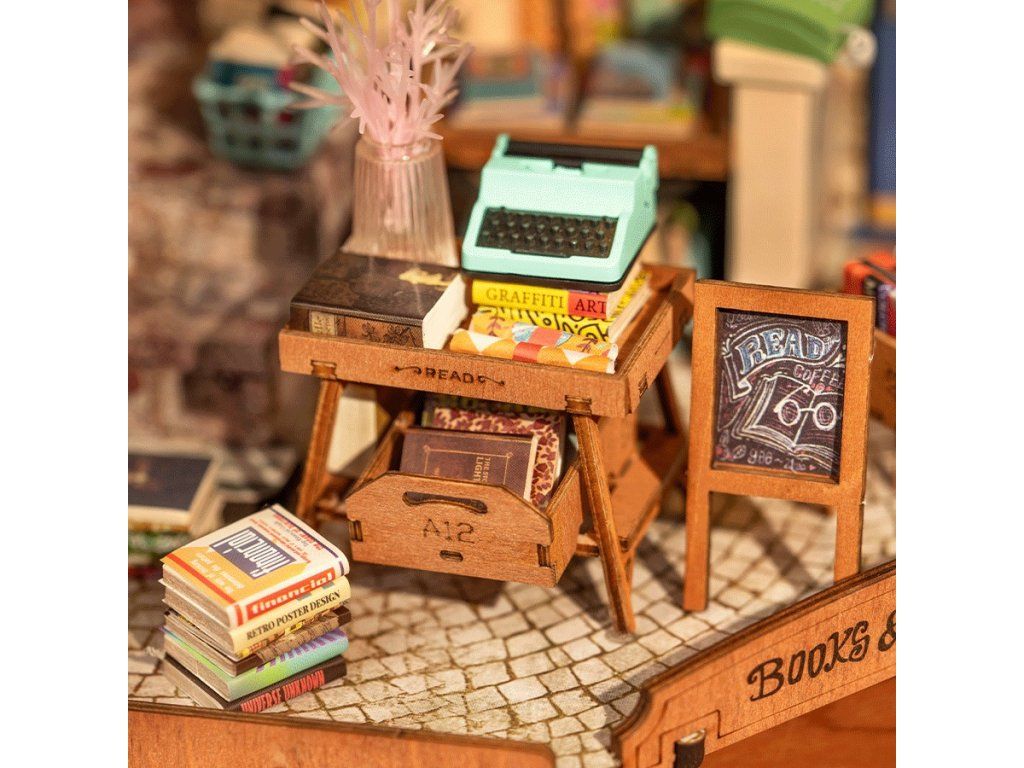 RoboTime 3D drevená skladačka Miniatúra domčeka Kníhkupectvo na rohu